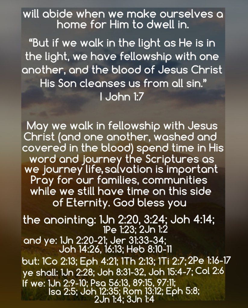 “But the anointing which you have received from Him abides in you, and you do not need that anyone teach you; but as the same anointing teaches you concerning all things, and is true, and is not a lie, and just as it has taught you, you will abide in Him.” I John 2:27