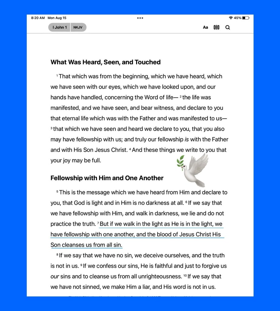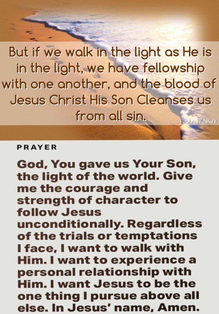 “But if we walk in the light as He is in the light, we have fellowship with one another, and the blood of Jesus Christ His Son cleanses us from all sin.” I John 1:7