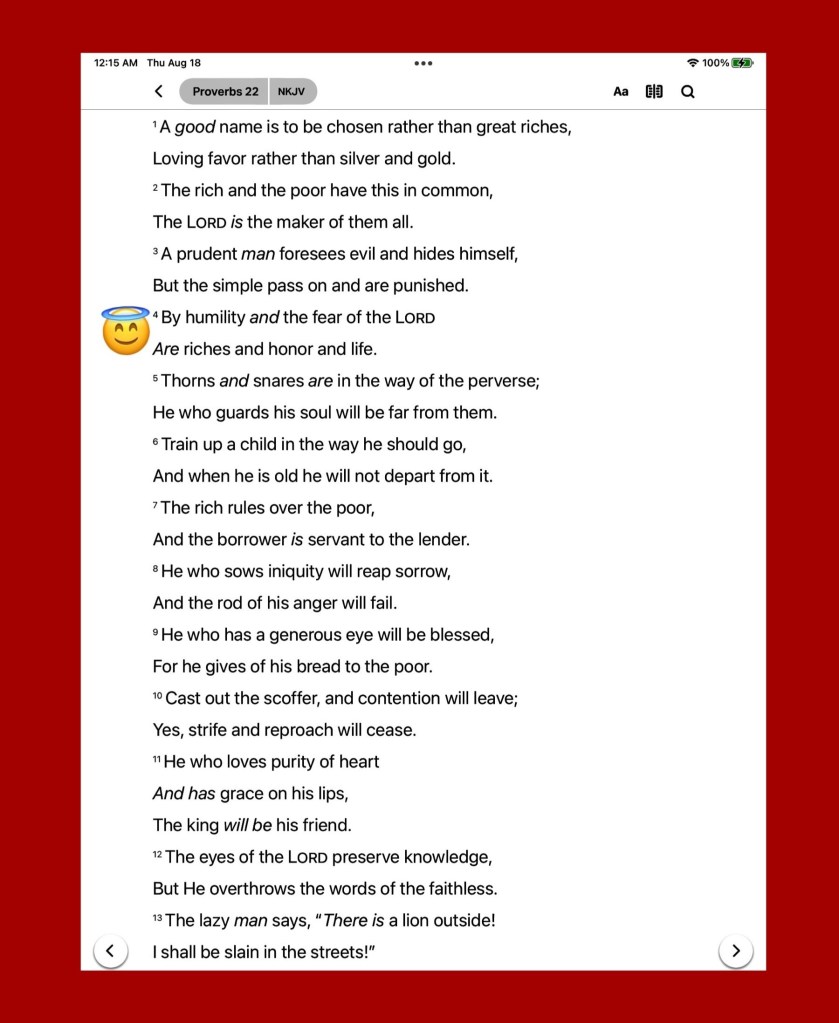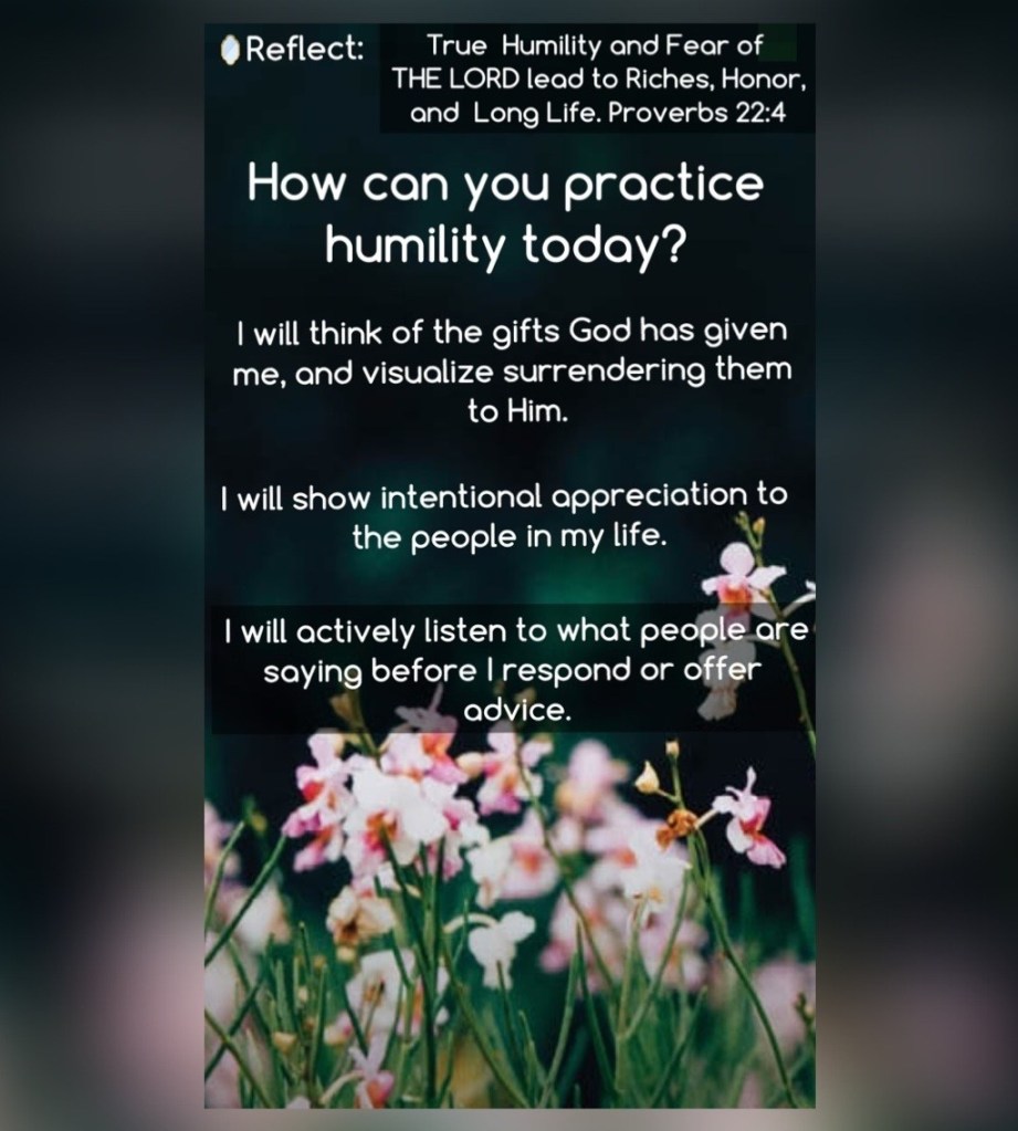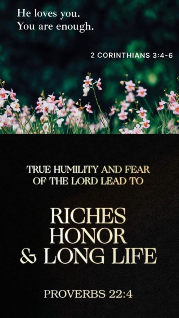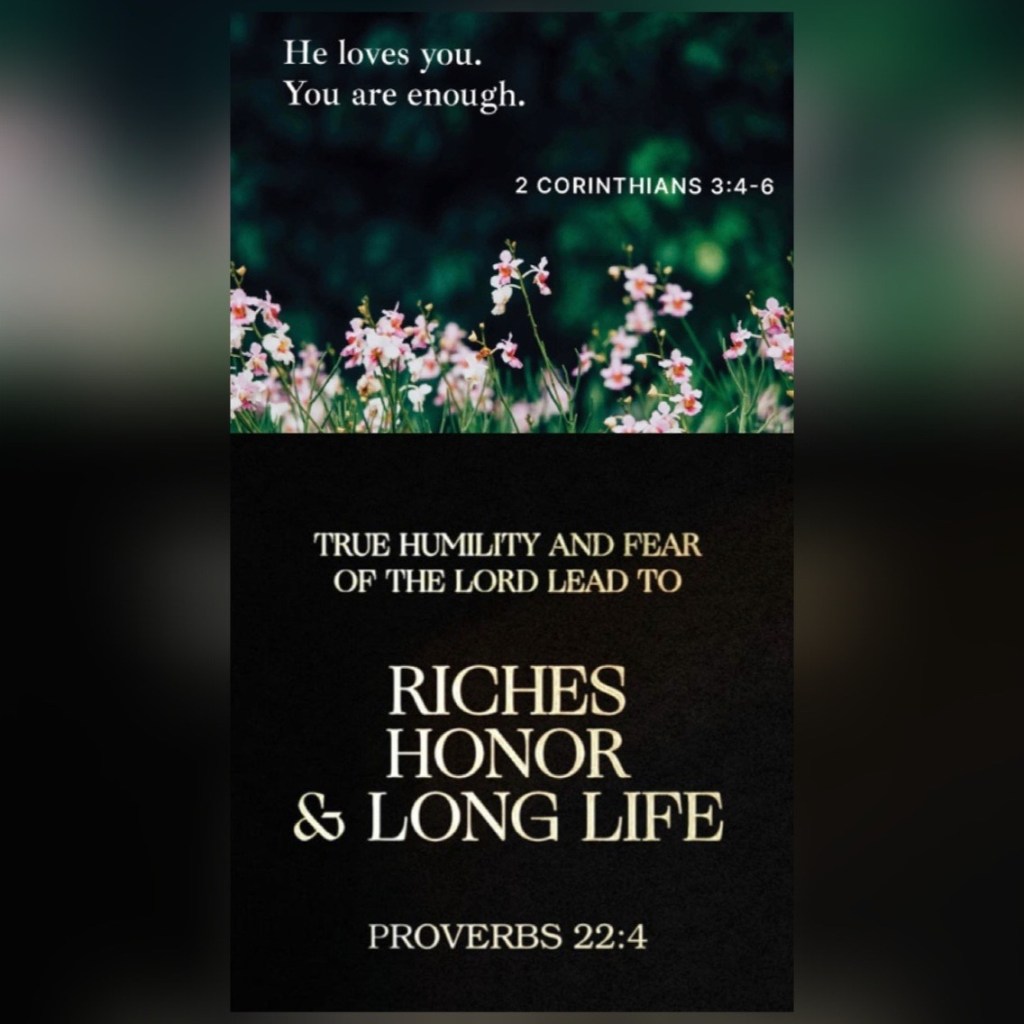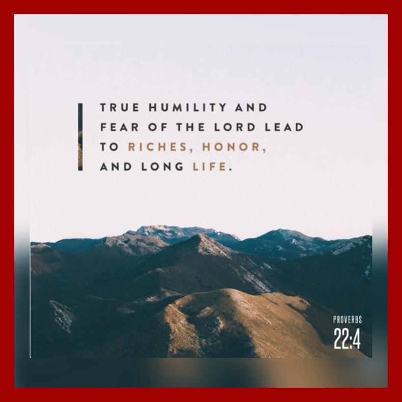 “By humility and the fear of The Lord Are riches and honor and life.” Proverbs 22:4