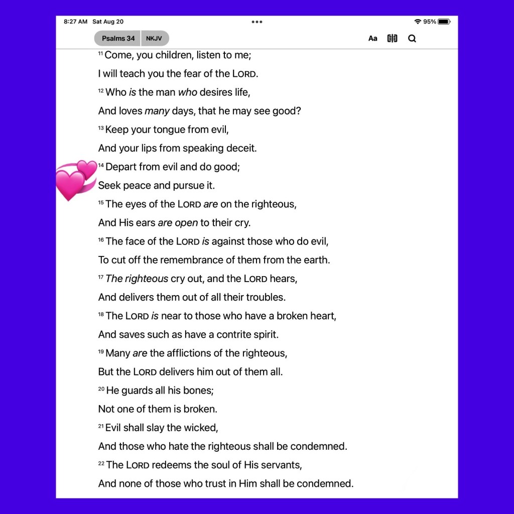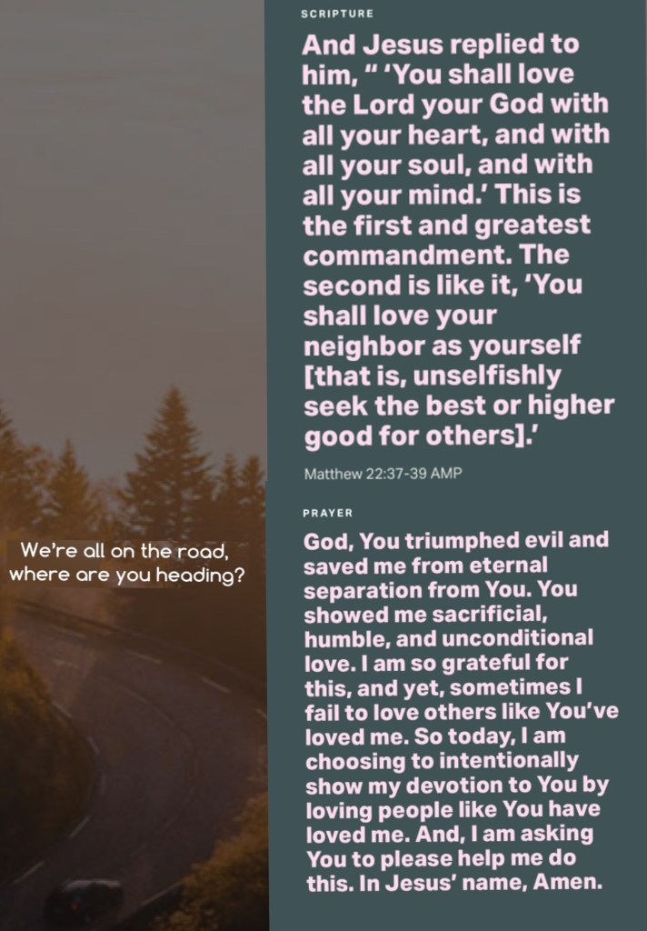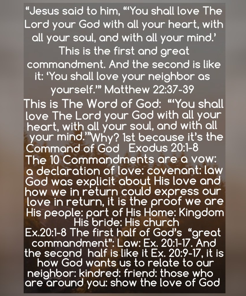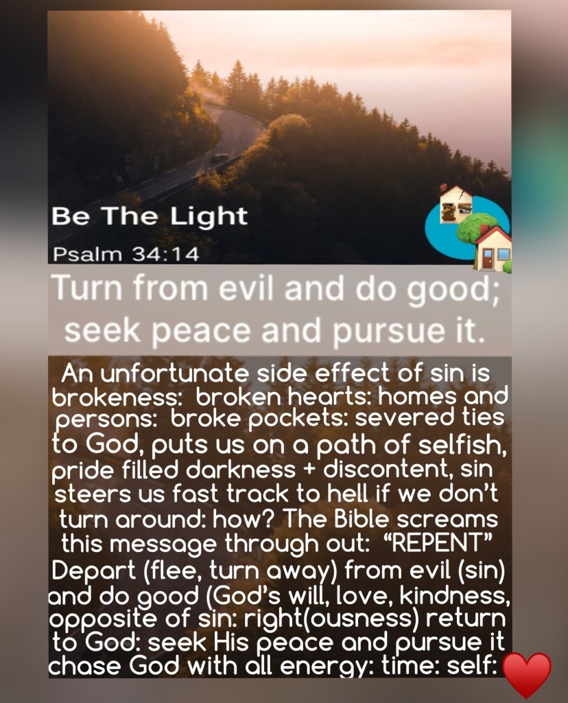 “Depart from evil and do good; Seek peace and pursue it.” Psalms 34:14 “Jesus said to him, “‘You shall love The Lord your God with all your heart, with all your soul, and with all your mind.’ This is the first and great commandment. And the second is like it: ‘You shall love your neighbor as yourself.’” Matthew 22:37-39