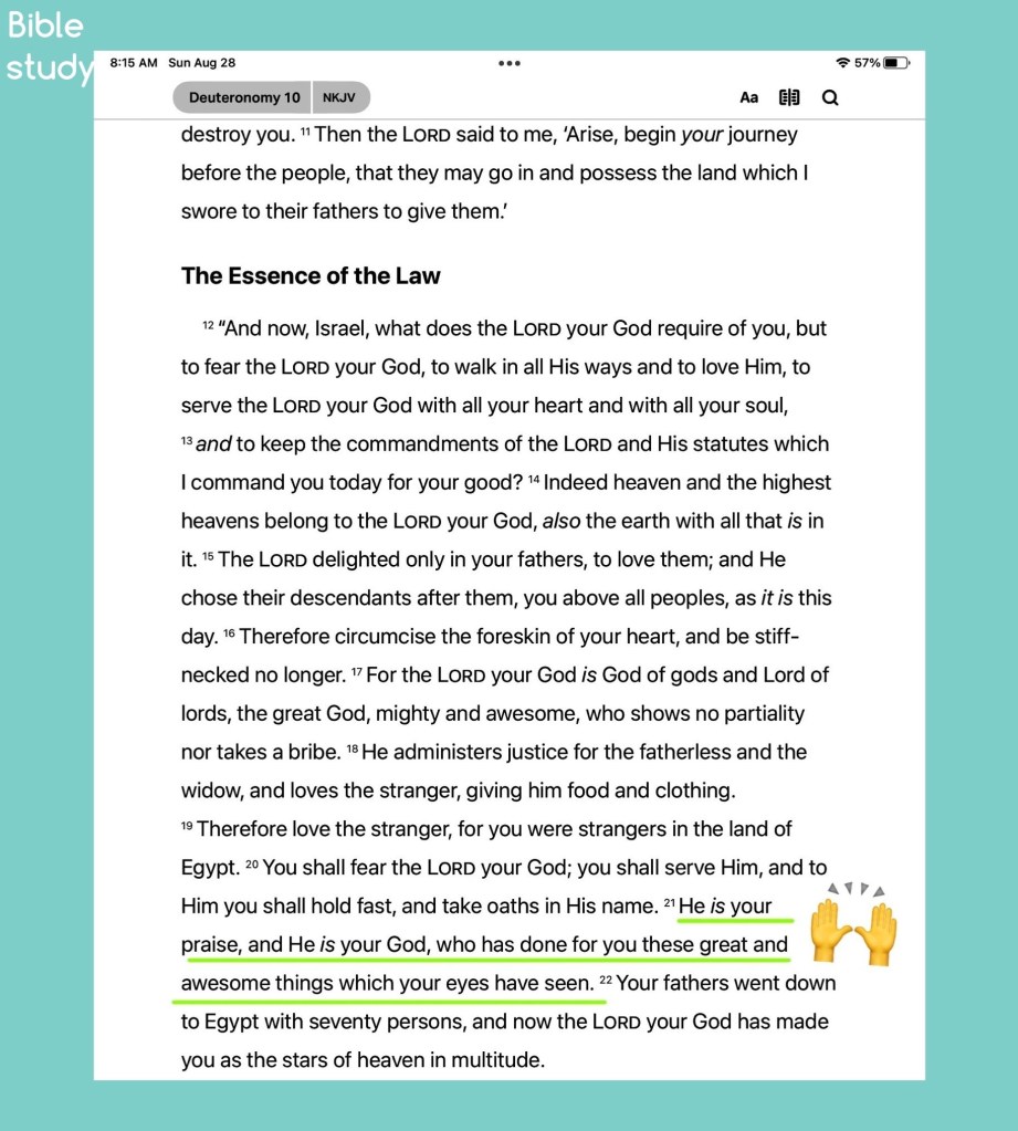He is thy praise, and He is thy God, that hath done for thee these great and terrible things, which thine eyes have seen. Deuteronomy 10:21 KJV