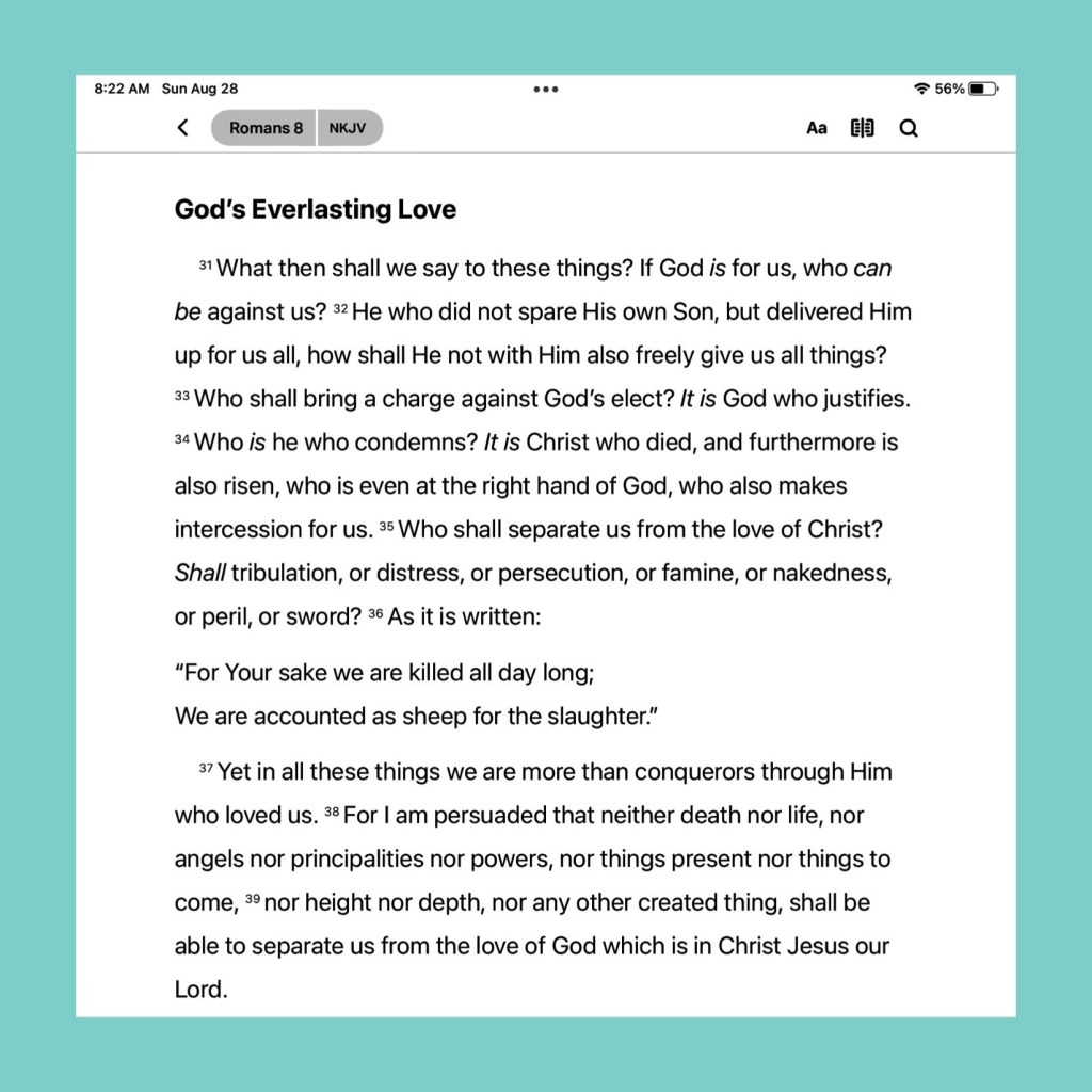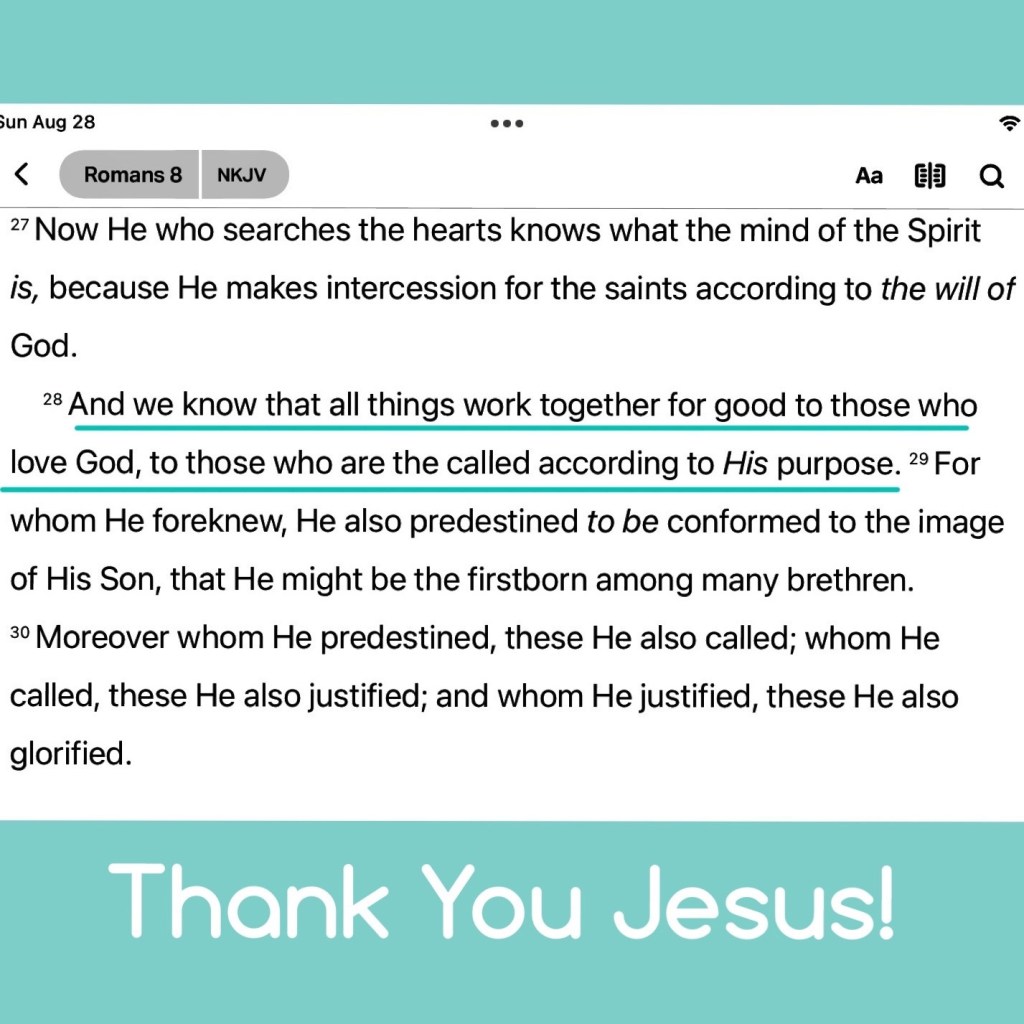 And we know that all things work together for good to them that love God, to them who are the called according to His purpose. Romans 8:28 KJV