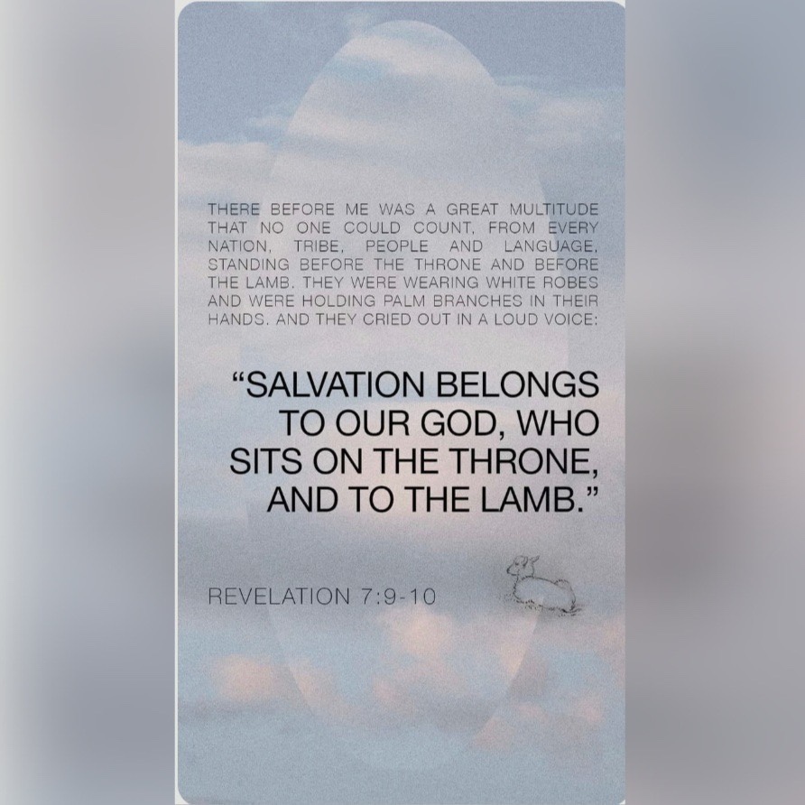 Rev 7:10 And cried with a loud voice, saying, Salvation to our God which sitteth upon the throne, and unto the Lamb.