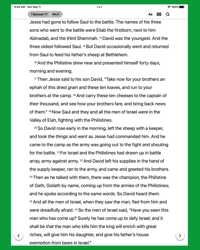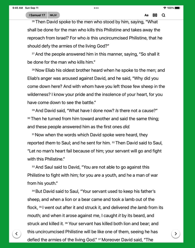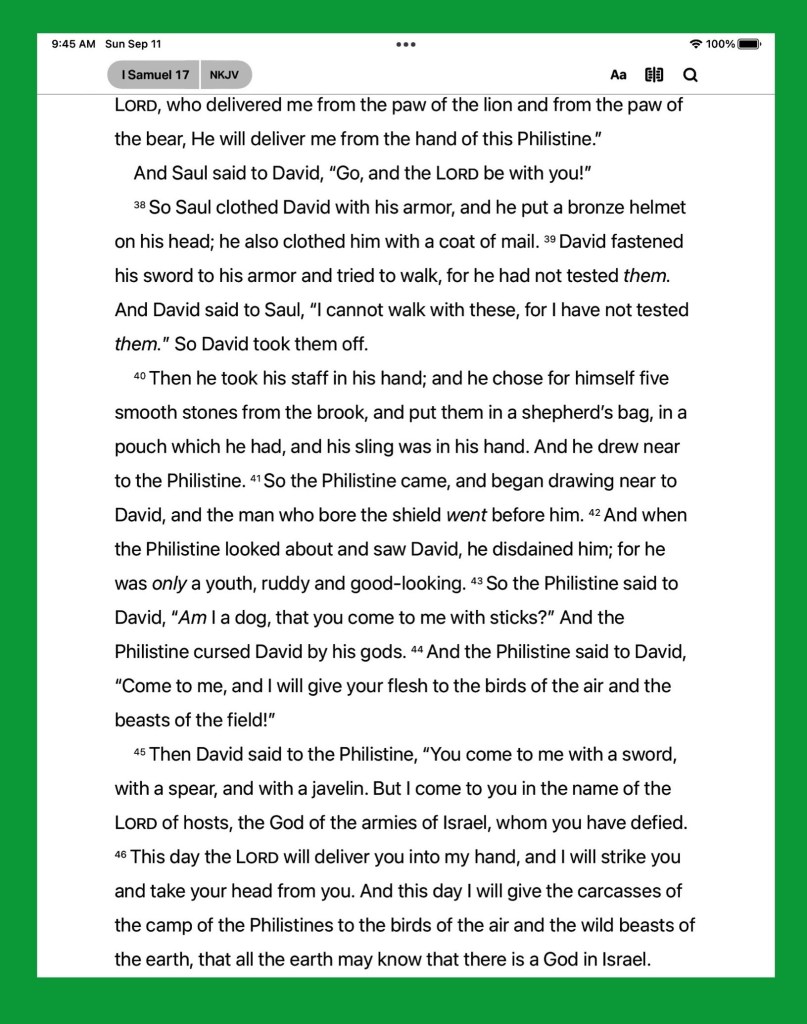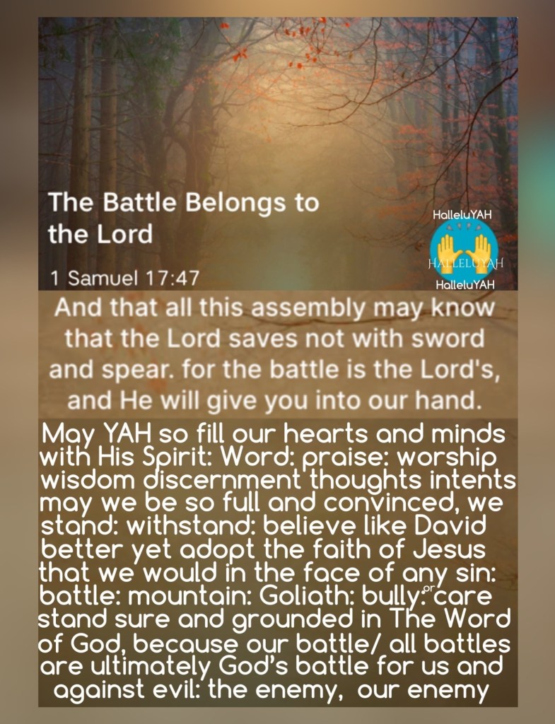 And all this assembly shall know that the LORD saveth not with sword and spear: for the battle is the LORD’S, and he will give you into our hands. 1 Samuel 17:47
