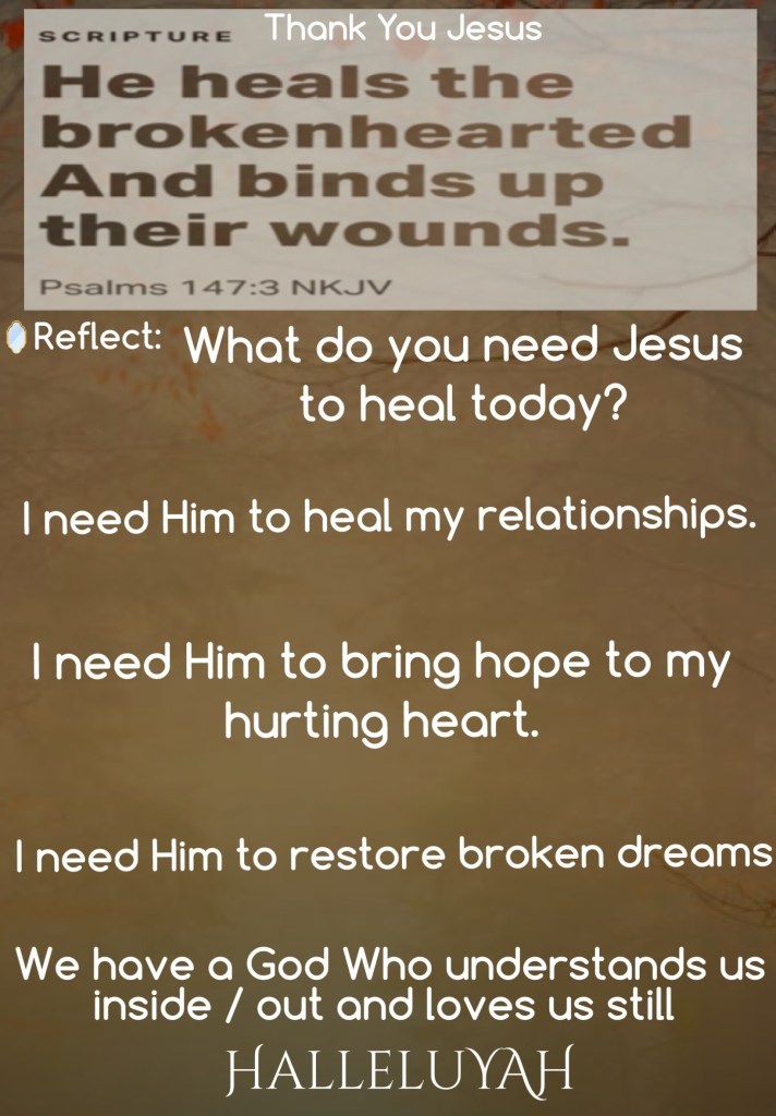 He healeth the broken in heart, and bindeth up their wounds. Psalms 147:3