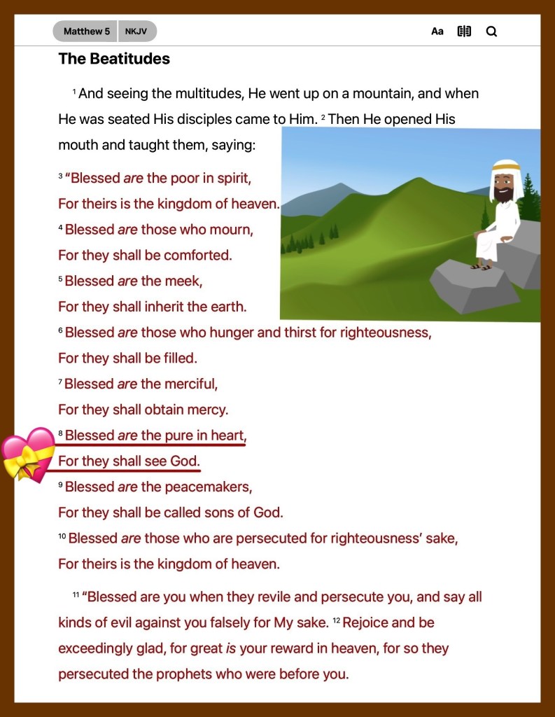Mat 5:8 Blessed are the pure in heart: for they shall see God.