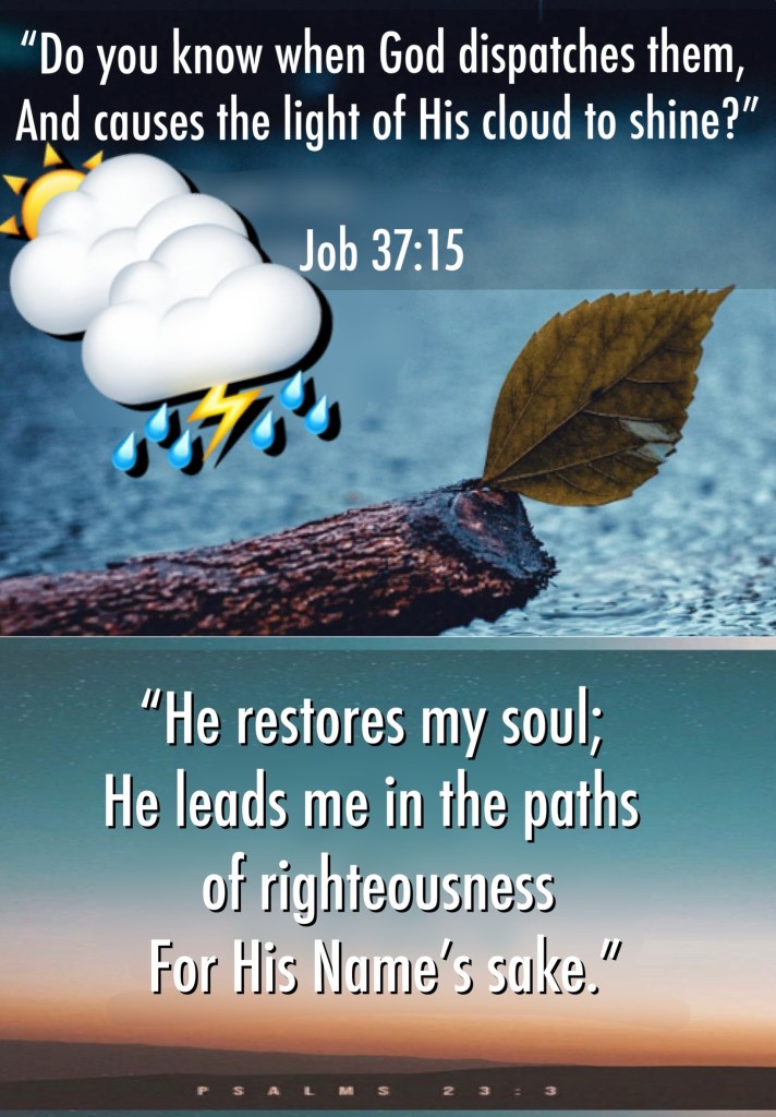 βDo you know how God establishes and commands them, And makes the lightning of His [storm] cloud shine?β Job 37:15 AMP βHe refreshes and restores my soul (life); He leads me in the paths of righteousness for His nameβs sake.β Psalms 23:3 AMP