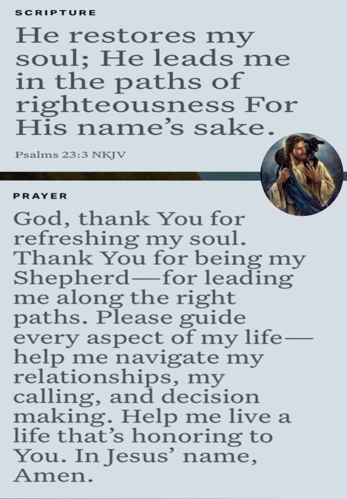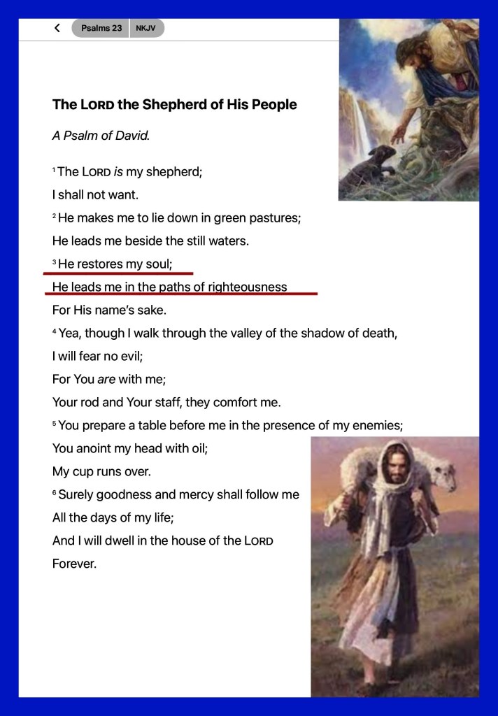 Psa 23:3 He restoreth my soul: he leadeth me in the paths of righteousness for his name’s sake.