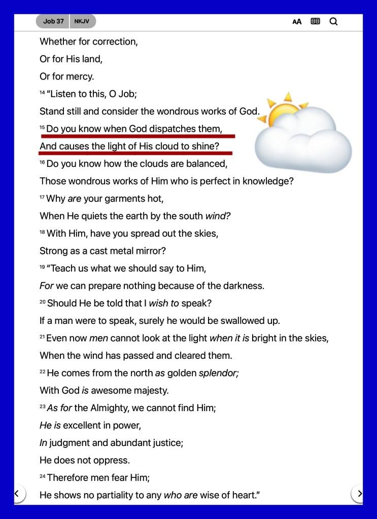 Job 37:15 Dost thou know when God disposed them, and caused the light of his cloud to shine?