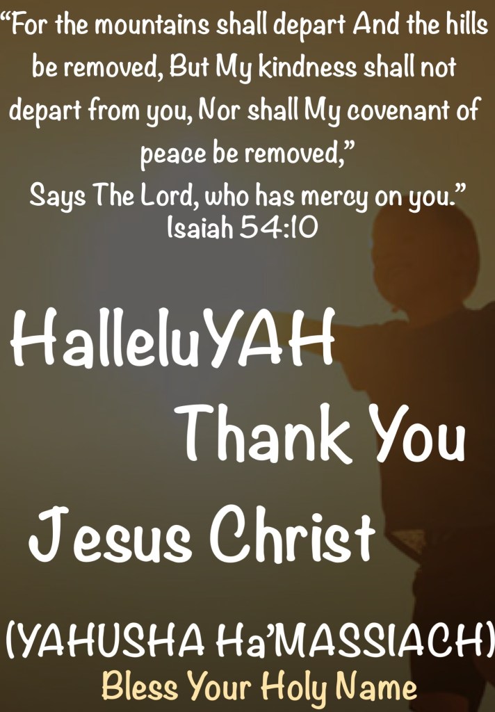 Isa 54:10 For the mountains shall depart, and the hills be removed; but my kindness shall not depart from thee, neither shall the covenant of my peace be removed, saith the LORD that hath mercy on thee.