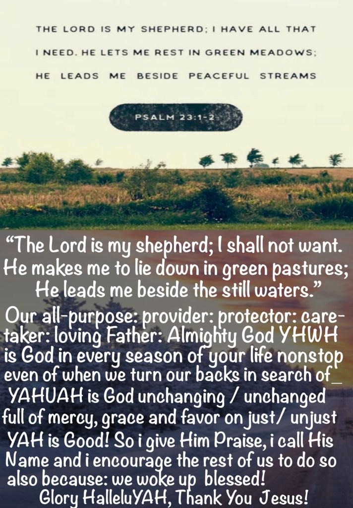 Psa 23:1 A Psalm of David. The LORD is my shepherd; I shall not want.