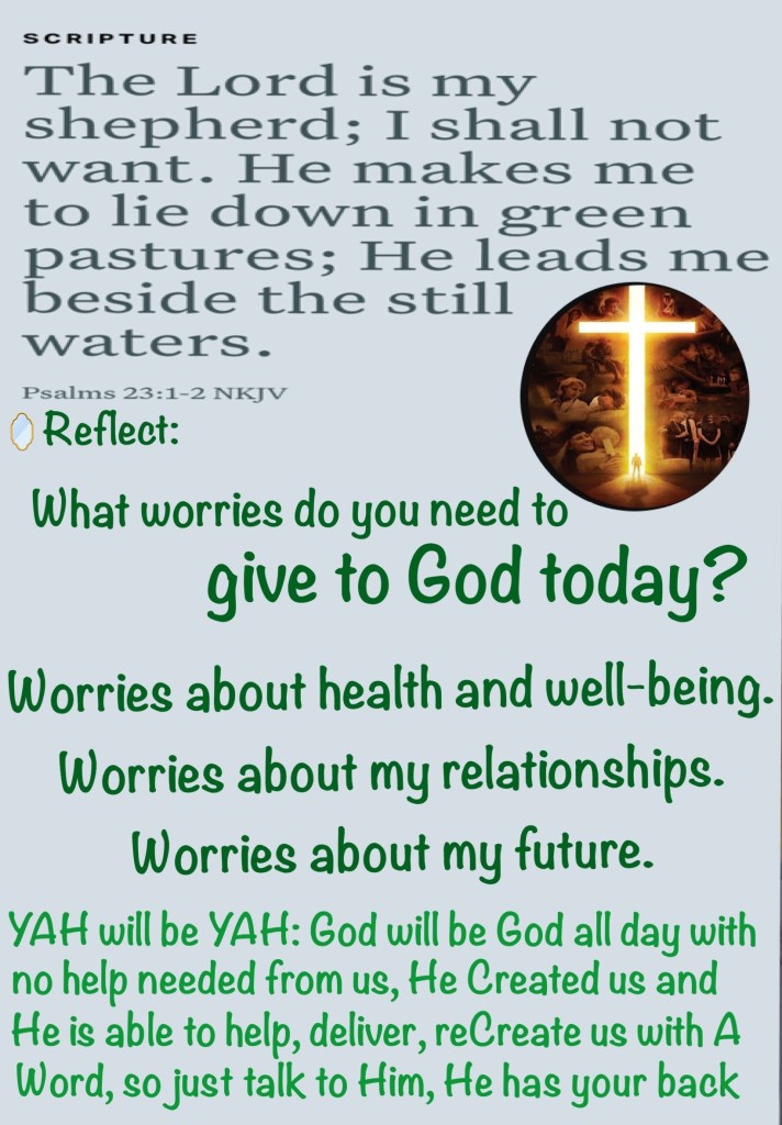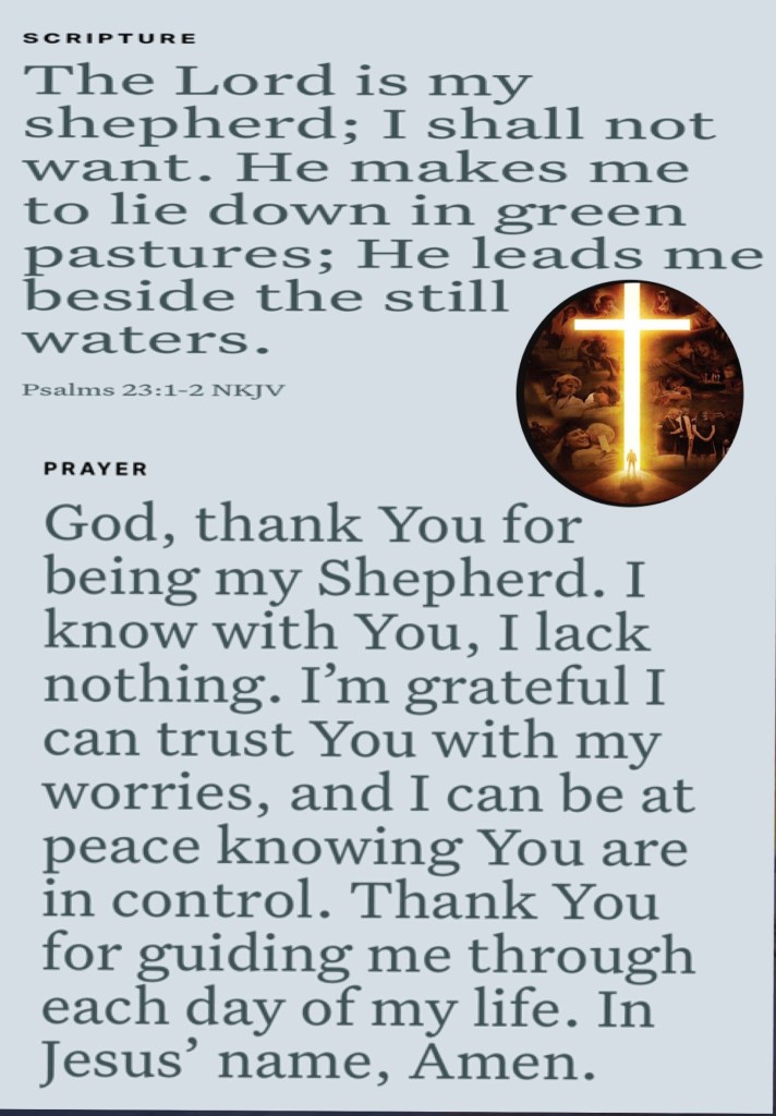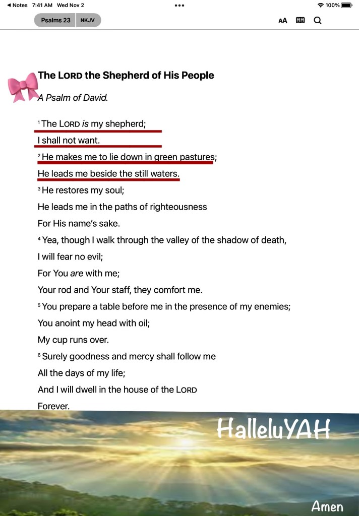 “Blessed is the man Who walks not in the counsel of the ungodly, Nor stands in the path of sinners, Nor sits in the seat of the scornful; But his delight is in the law of the Lord, And in His law he meditates day and night.” Psalms 1:1-2 “The Lord is my shepherd; I shall not want. He makes me to lie down in green pastures; He leads me beside the still waters.” Psalms 23:1-2