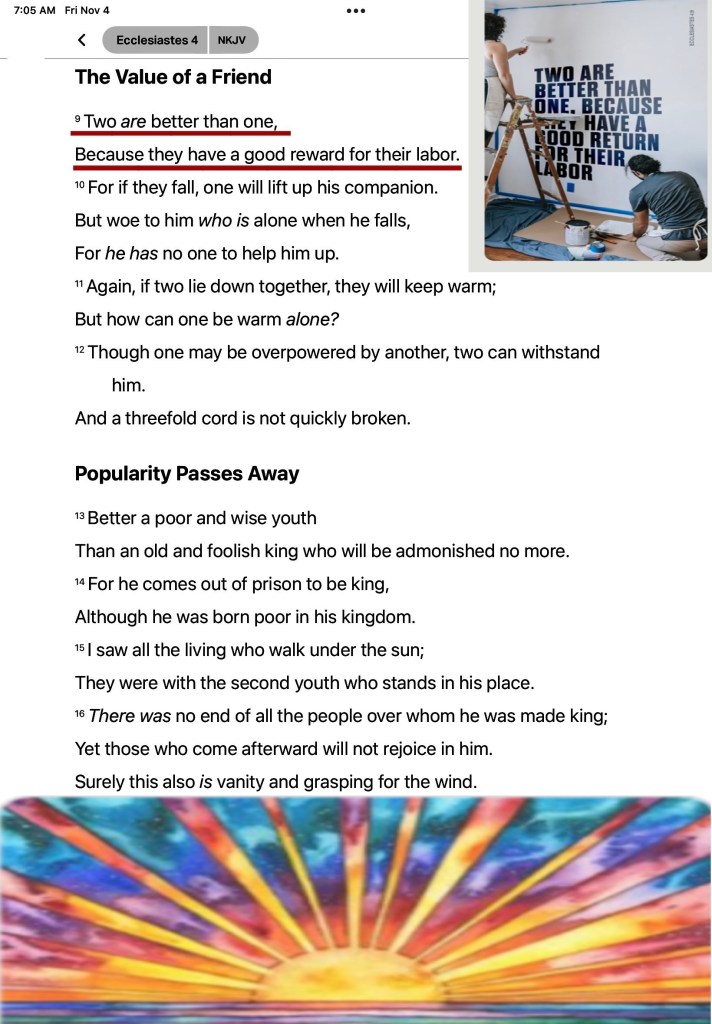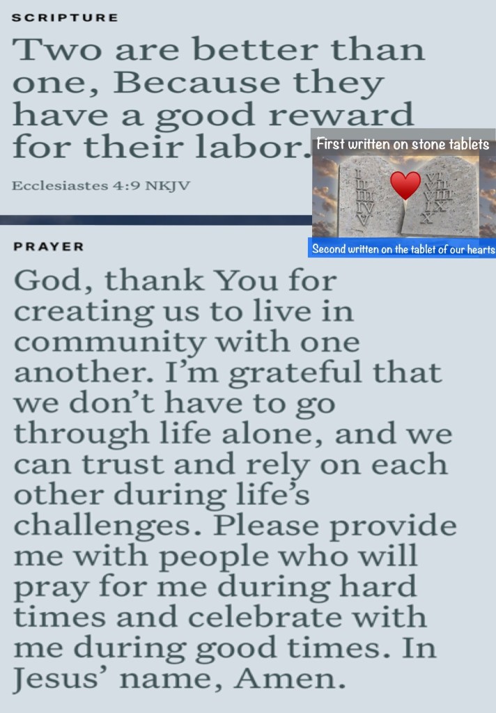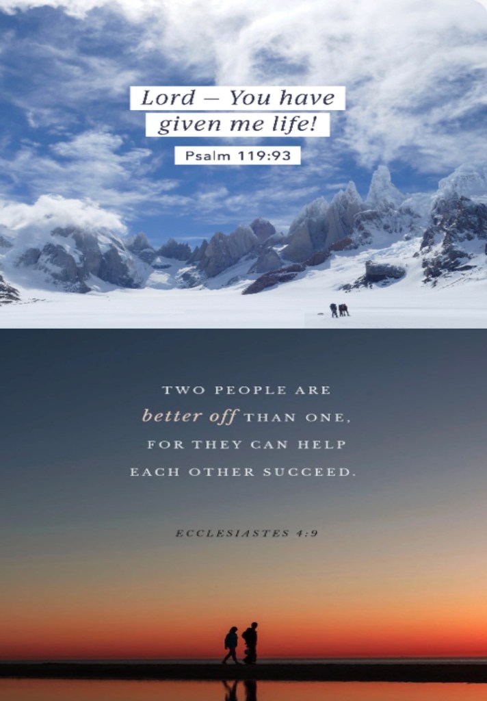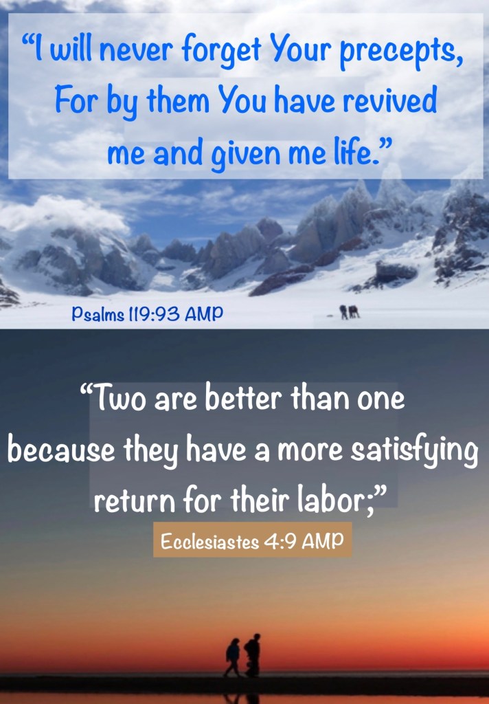 โI will never forget Your precepts, For by them You have revived me and given me life.โPsalms 119:93 AMP โTwo are better than one because they have a more satisfying return for their labor;โ Ecclesiastes 4:9 AMP