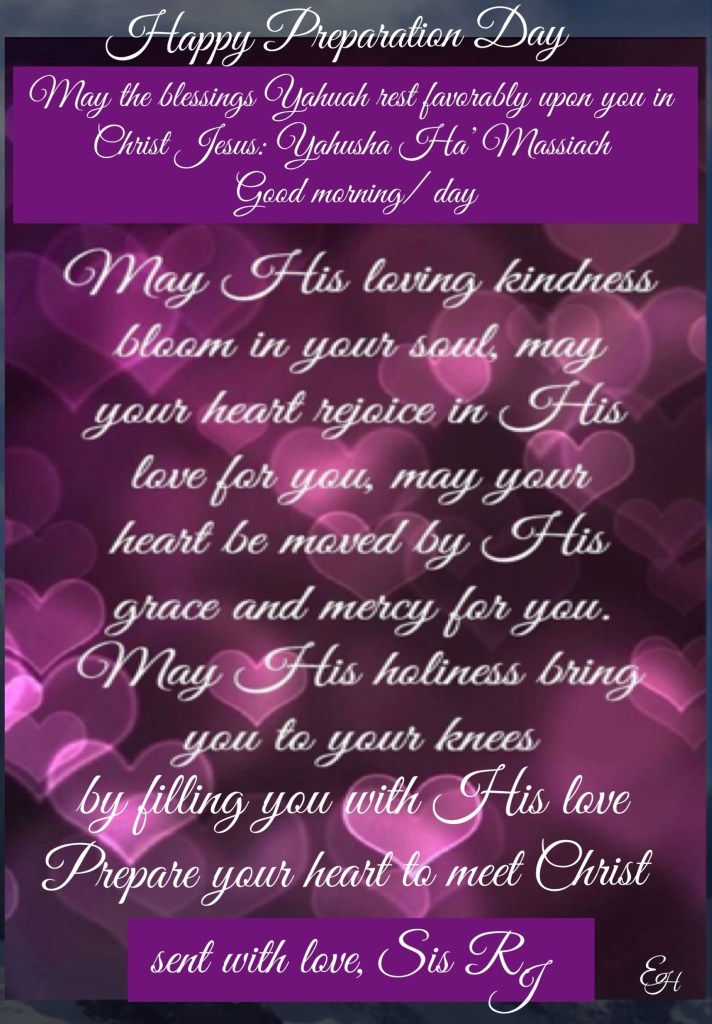 Happy Preparation day: letโs worship our Father Christ Jesus in everything we do, be a blessing and you will be blessed ๐