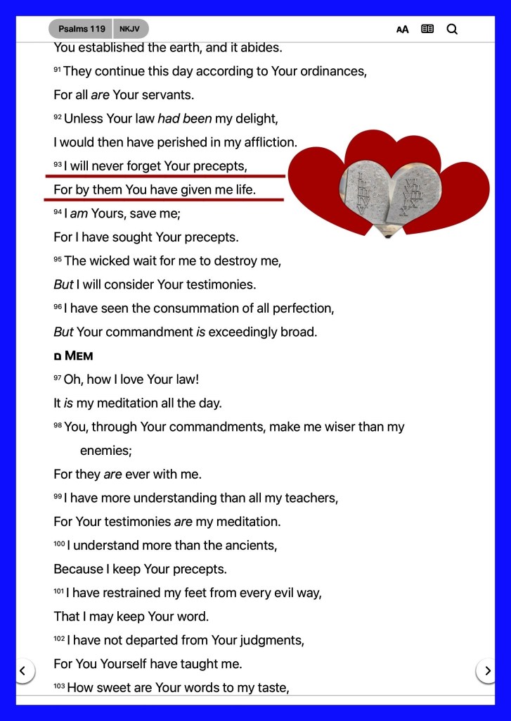 Psa 119:93 I will never forget thy precepts: for with them thou hast quickened me