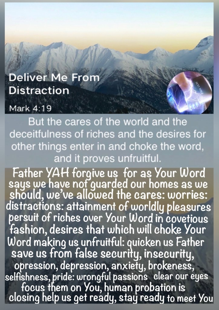 May YAH prepare our hearts to receive fresh Heavenly Bread, May The Holy Spirit teach us The Sanctuary message and guide our walk Home May God heal our earthly homes in every way we need most remove us from all sin to the glory of YAHUAH in Christ Jesus Name I pray. Amen