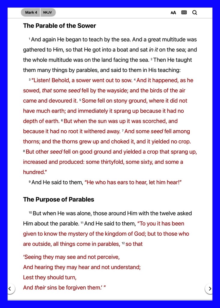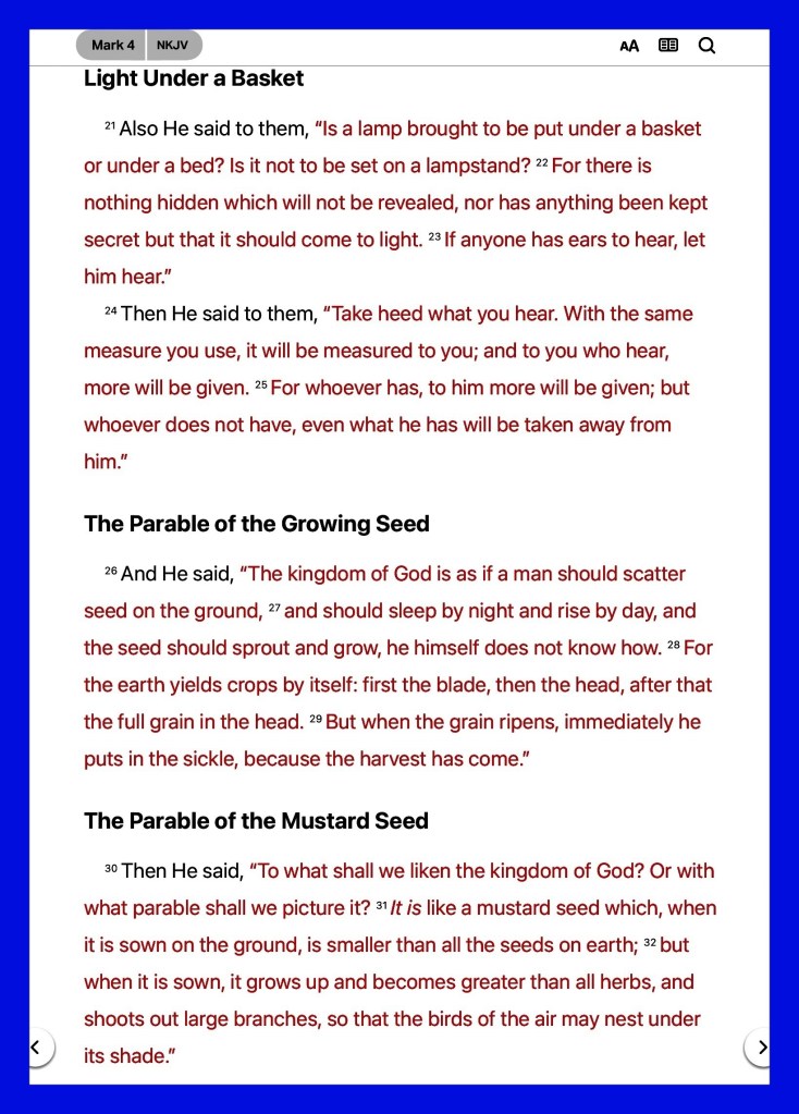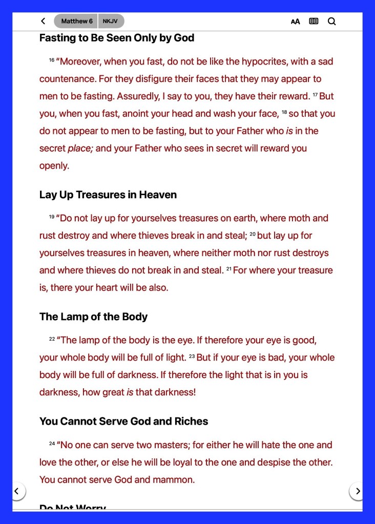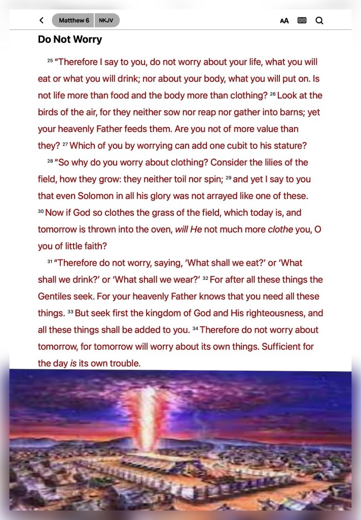 “and the cares of this world, the deceitfulness of riches, and the desires for other things entering in choke the word, and it becomes unfruitful.” Mark 4:19 “Give us this day our daily bread.” Matthew 6:11