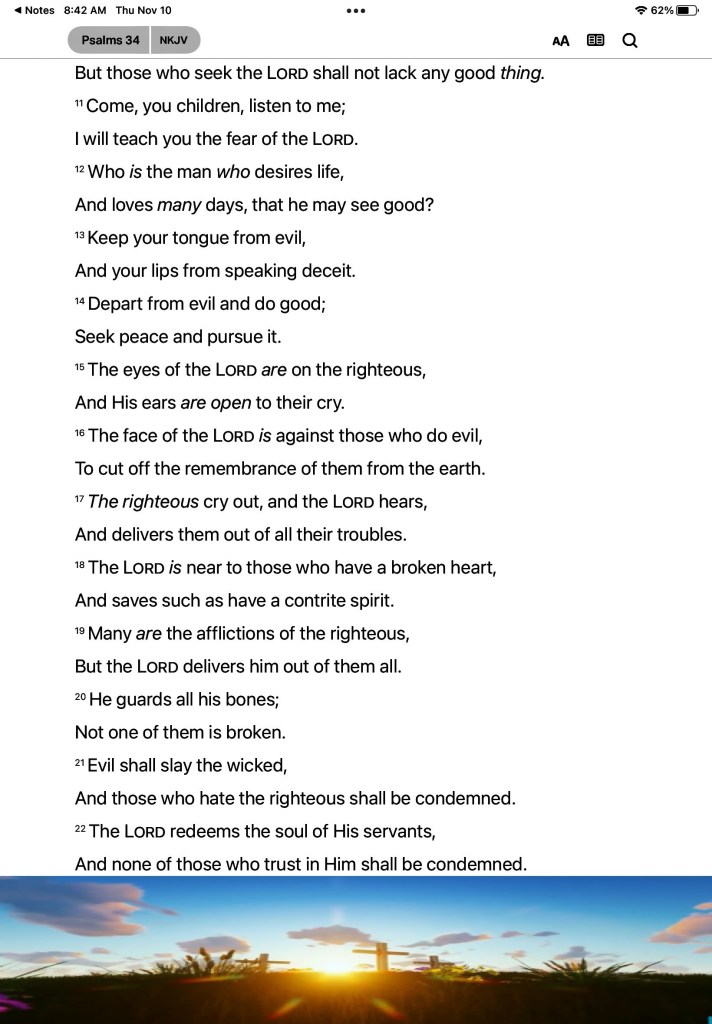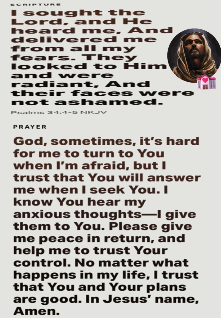 Psa 34:4 I sought the LORD, and he heard me, and delivered me from all my fears.