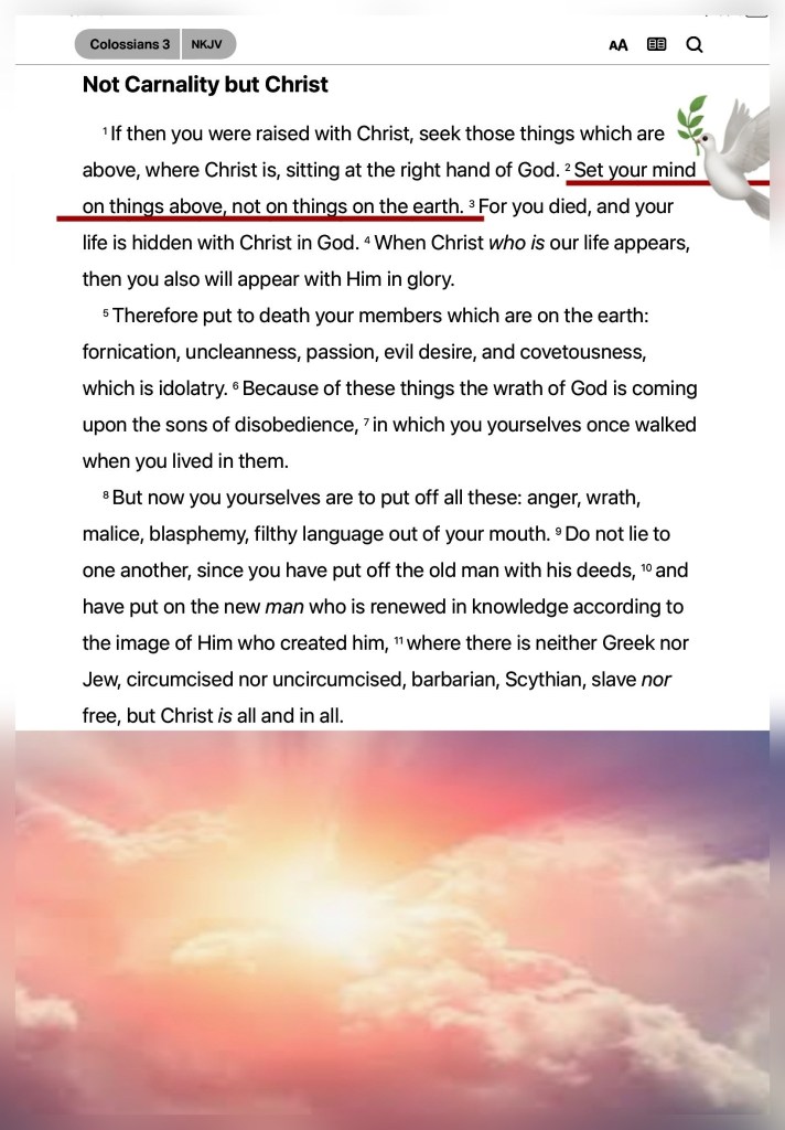 Col 3:2 Set your affection on things above, not on things on the earth.