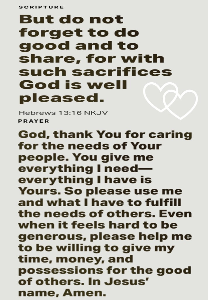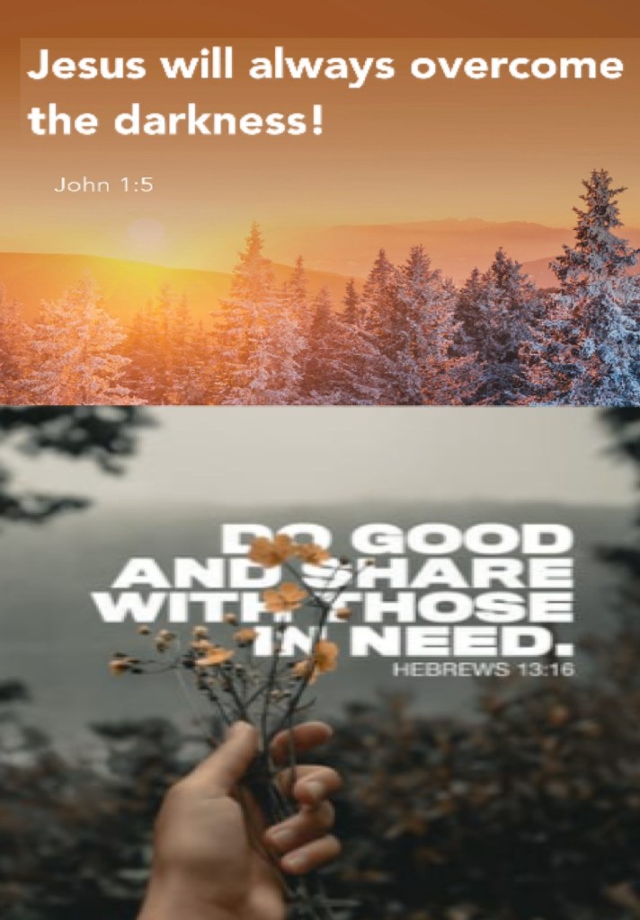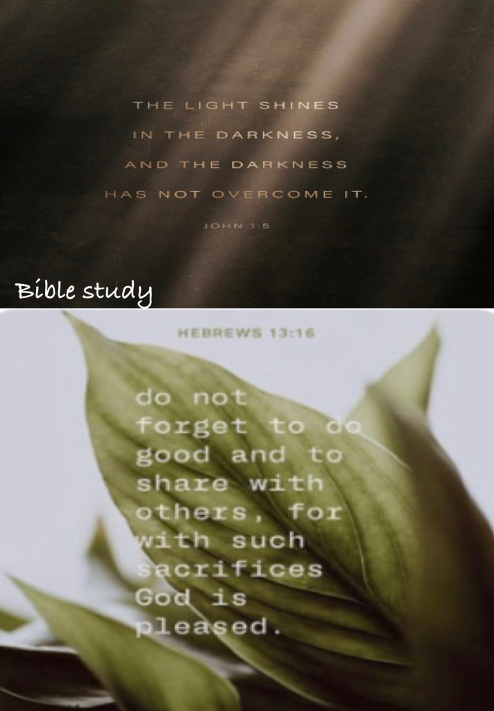 “And the light shines in the darkness, and the darkness did not comprehend it.” John 1:5 “But do not forget to do good and to share, for with such sacrifices God is well pleased.” Hebrews 13:16