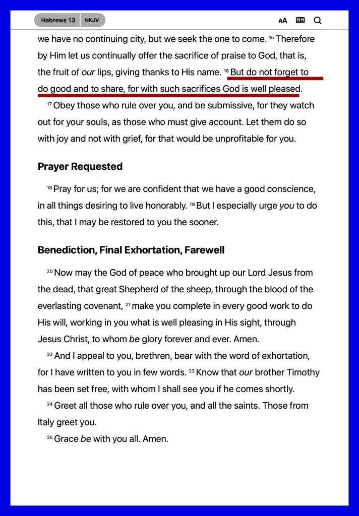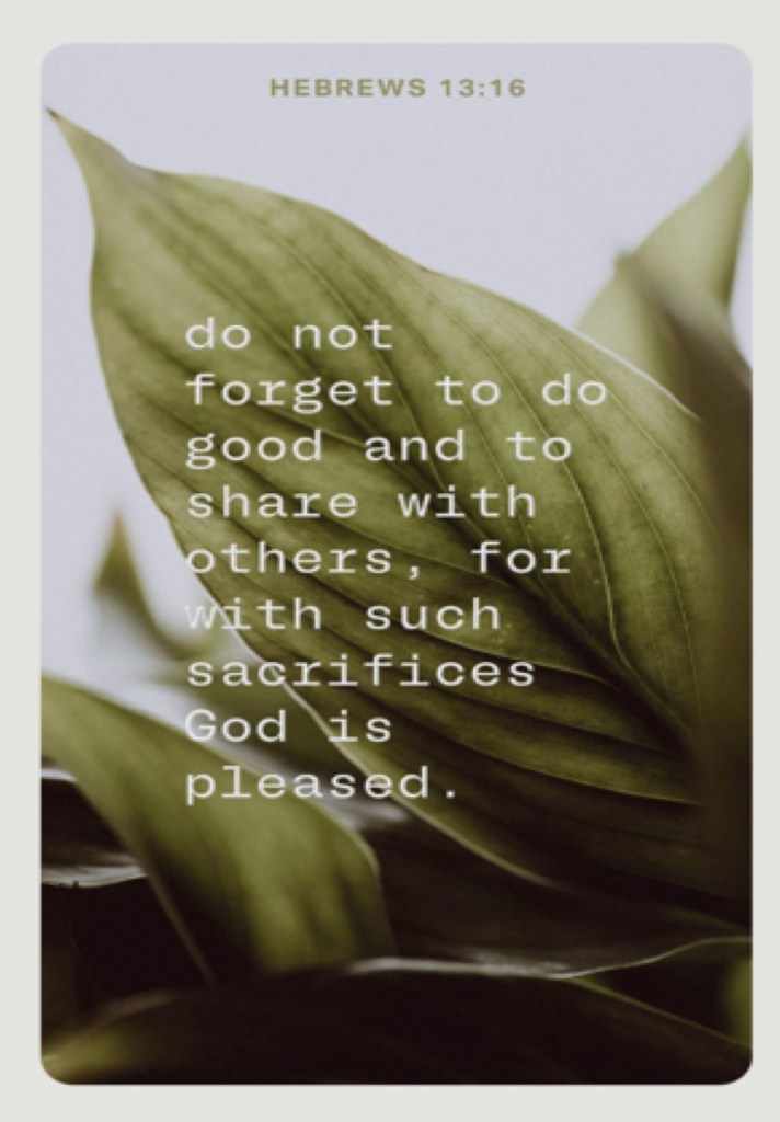 Heb 13:16 But to do good and to communicate forget not: for with such sacrifices God is well pleased.