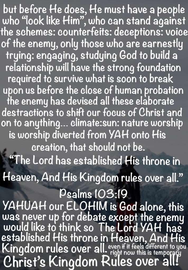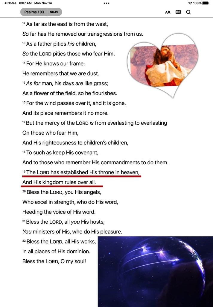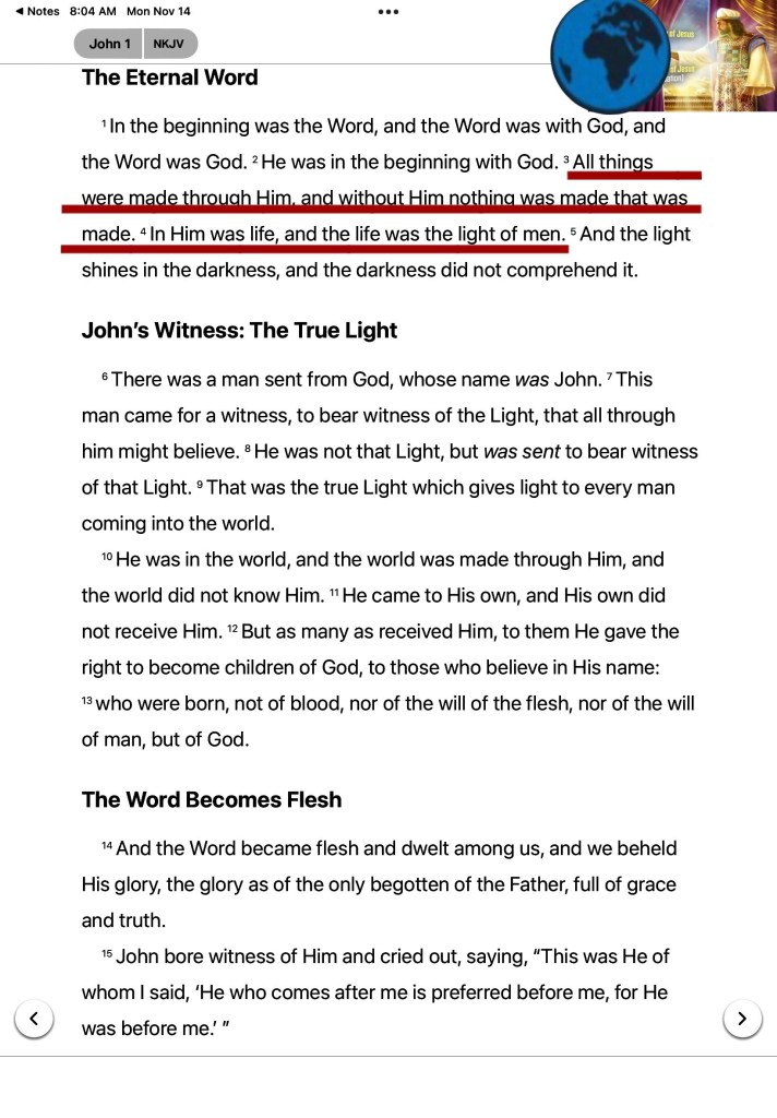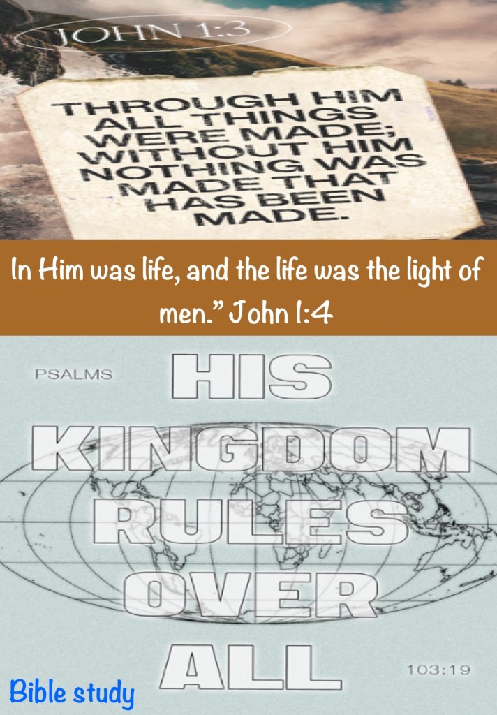 “All things were made through Him, and without Him nothing was made that was made. In Him was life, and the life was the light of men.” John 1:3-4 “The Lord has established His throne in Heaven, And His Kingdom rules over all.” Psalms 103:19