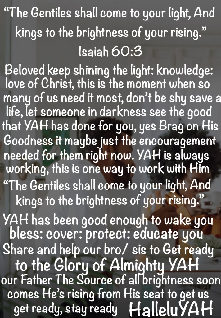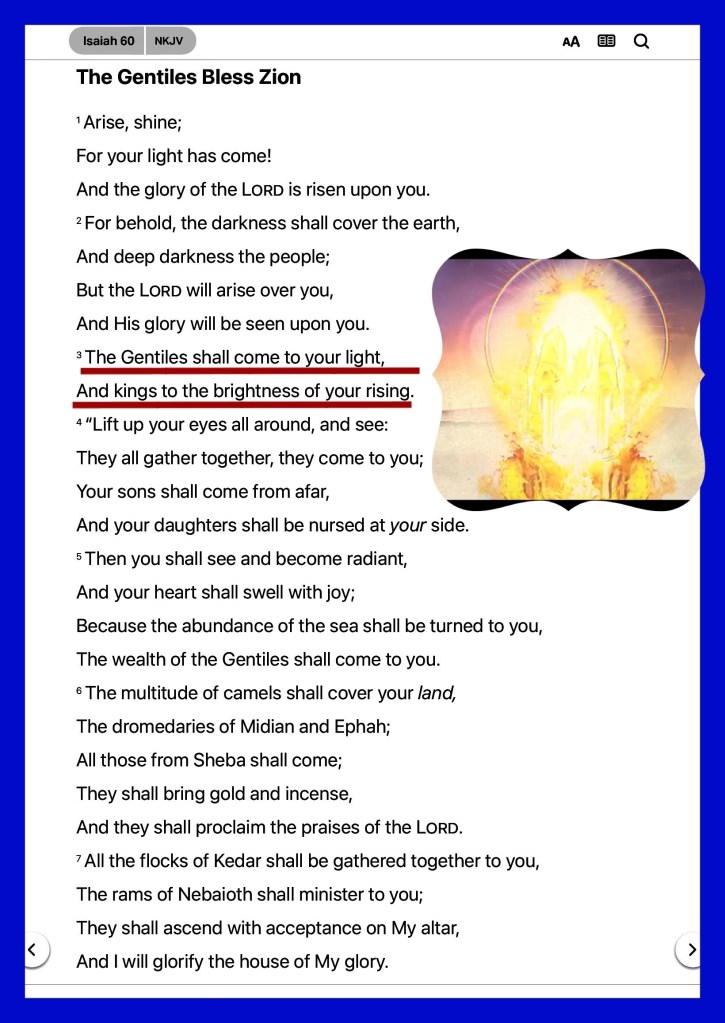 Isa 60:3 And the Gentiles shall come to thy light, and kings to the brightness of thy rising.