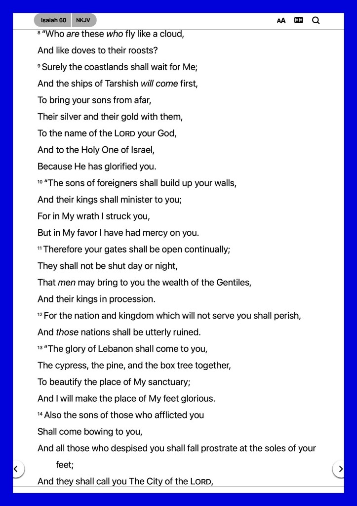 “The work of righteousness will be peace, And the effect of righteousness, quietness and assurance forever. My people will dwell in a peaceful habitation, In secure dwellings, and in quiet resting places,” Isaiah 32:17-18 “The Gentiles shall come to your light, And kings to the brightness of your rising.” Isaiah 60:3