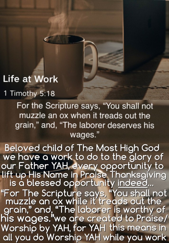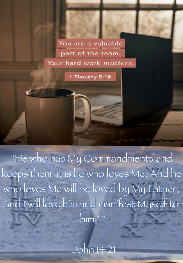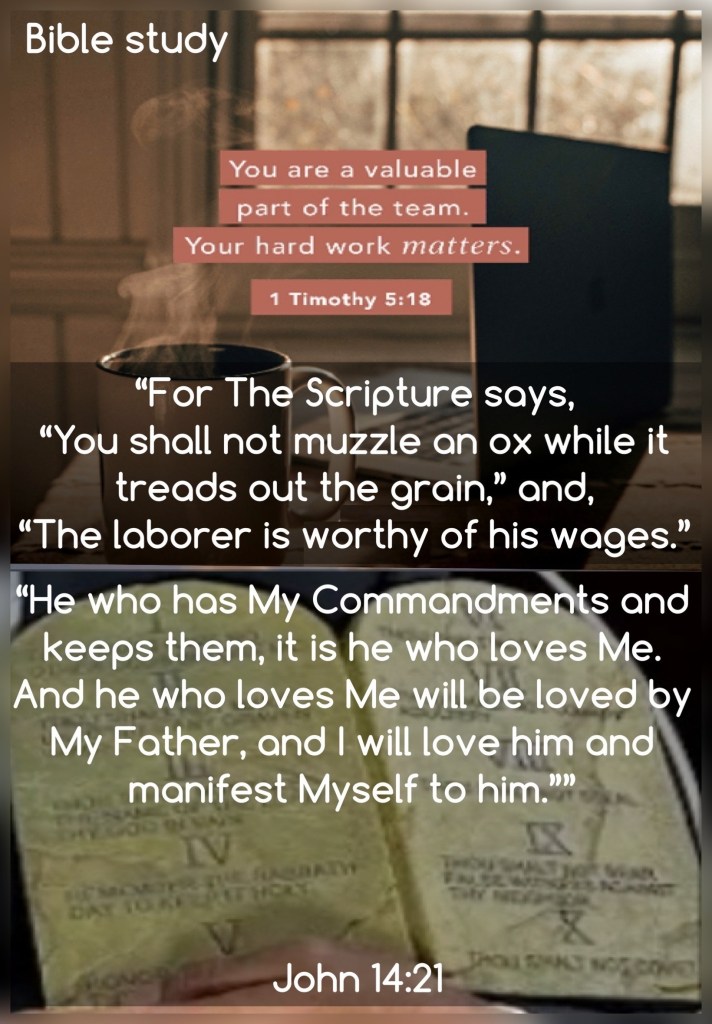“For The Scripture says, “You shall not muzzle an ox while it treads out the grain,” and, “The laborer is worthy of his wages.” I Timothy 5:18 “He who has My Commandments and keeps them, it is he who loves Me. And he who loves Me will be loved by My Father, and I will love him and manifest Myself to him.”” John 14:21