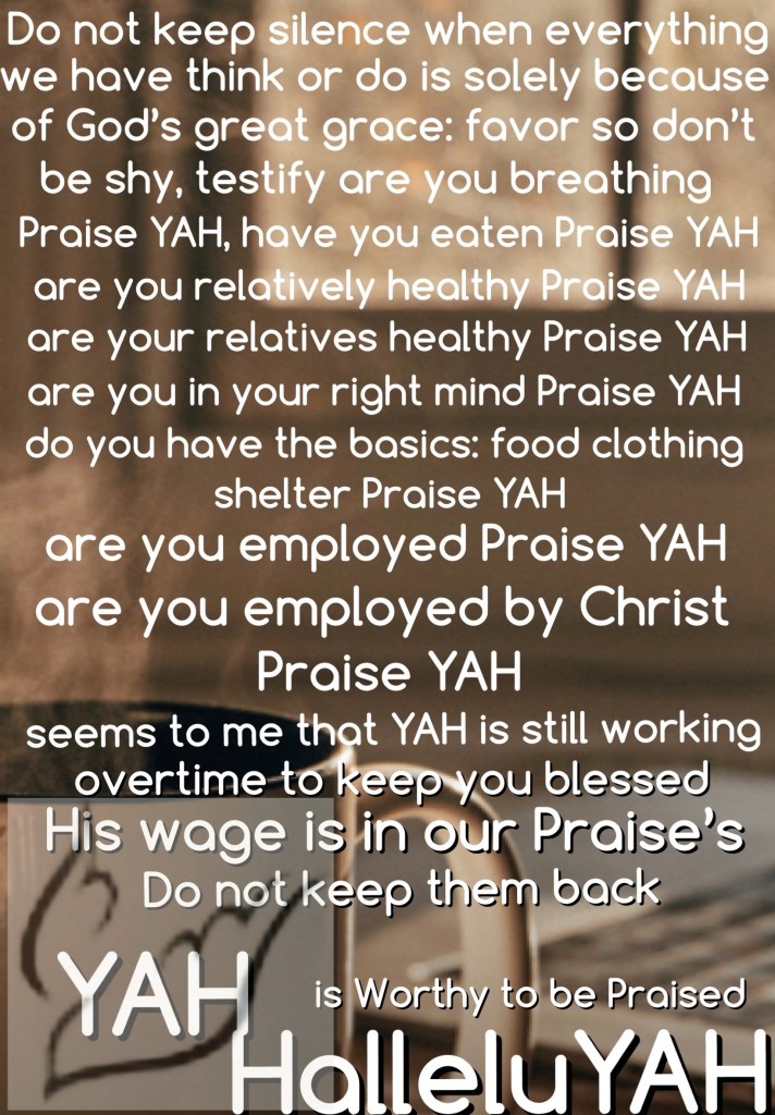 YAH said: “Take heed, watch and pray; for you do not know when the time is.” Mark 13:33