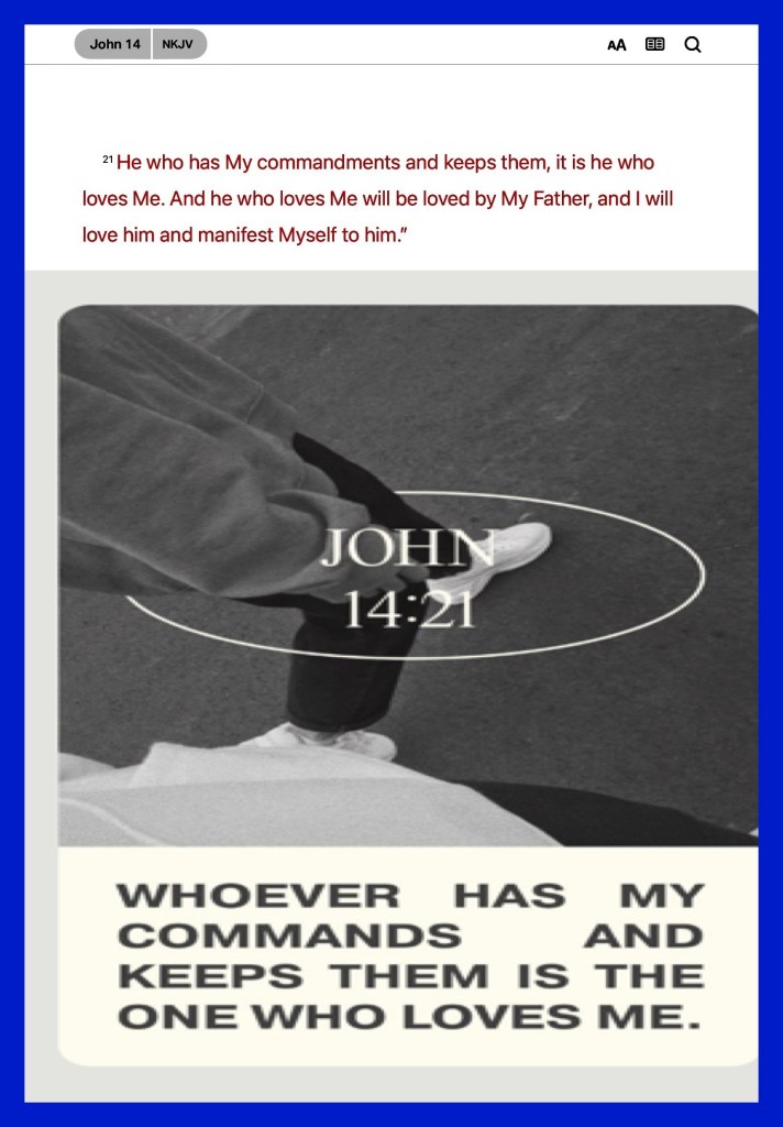 Joh 14:21 He that hath my commandments, and keepeth them, he it is that loveth me: and he that loveth me shall be loved of my Father, and I will love him, and will manifest myself to him.
