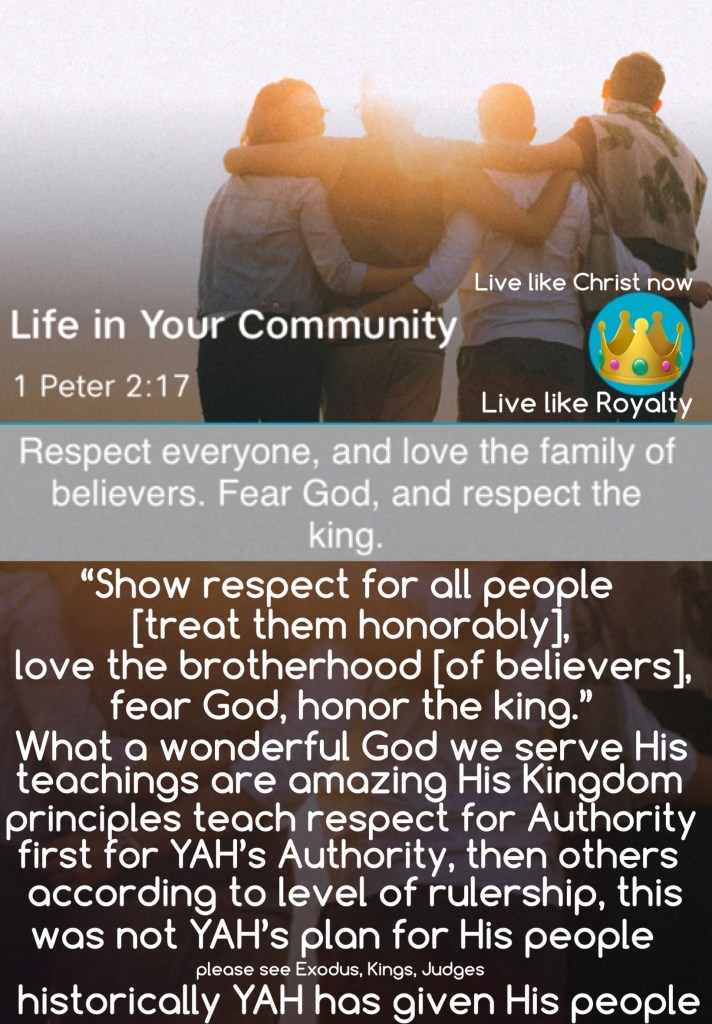 “Show respect for all people [treat them honorably], love the brotherhood [of believers], fear God, honor the king.” 1 Peter 2:17 AMP