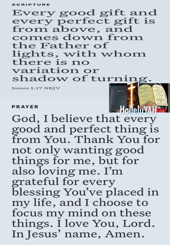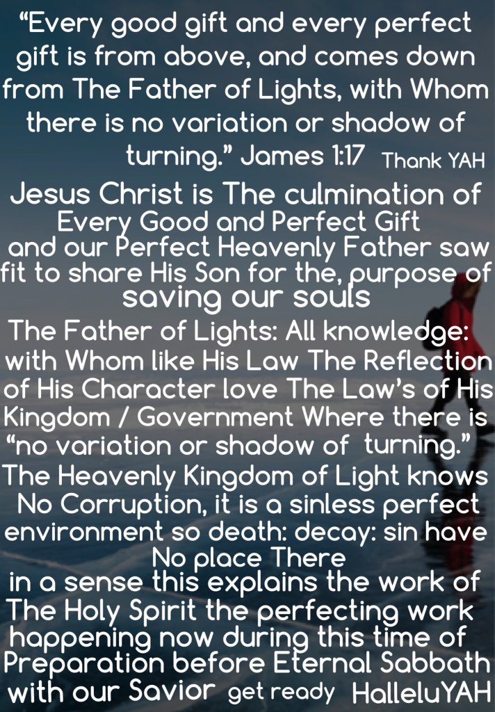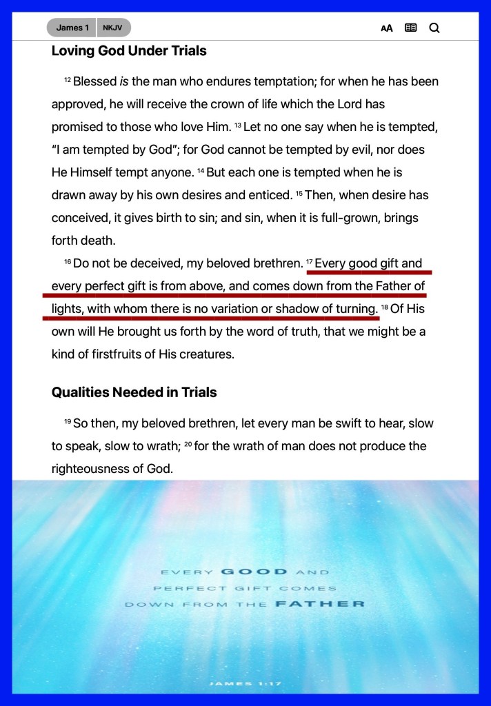 Jas 1:17 Every good gift and every perfect gift is from above, and cometh down from the Father of lights, with whom is no variableness, neither shadow of turning.