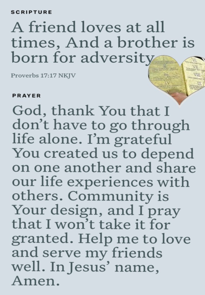 “Cry out and shout, O inhabitant of Zion, For great is The Holy One of Israel in your midst!”” Isaiah 12:6 “A friend loves at all times, And a brother is born for adversity.” Proverbs 17:17Proverbs 17:17