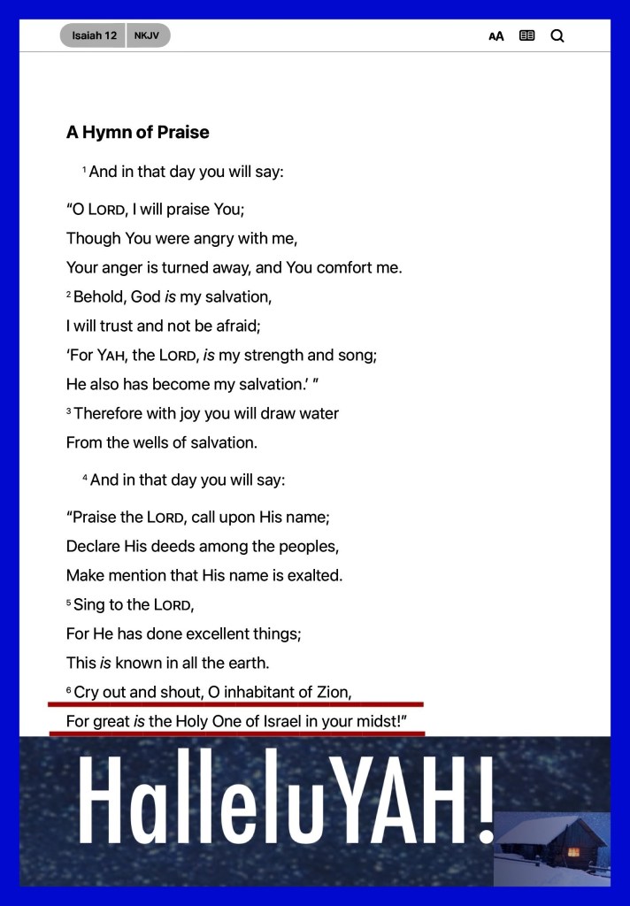 ““Cry aloud and shout, O inhabitant of Tsiyon, for great is the Set-apart One of Yisra’ĕl in your midst!”” Yeshayah (Isaiah) 12:6 TS2009