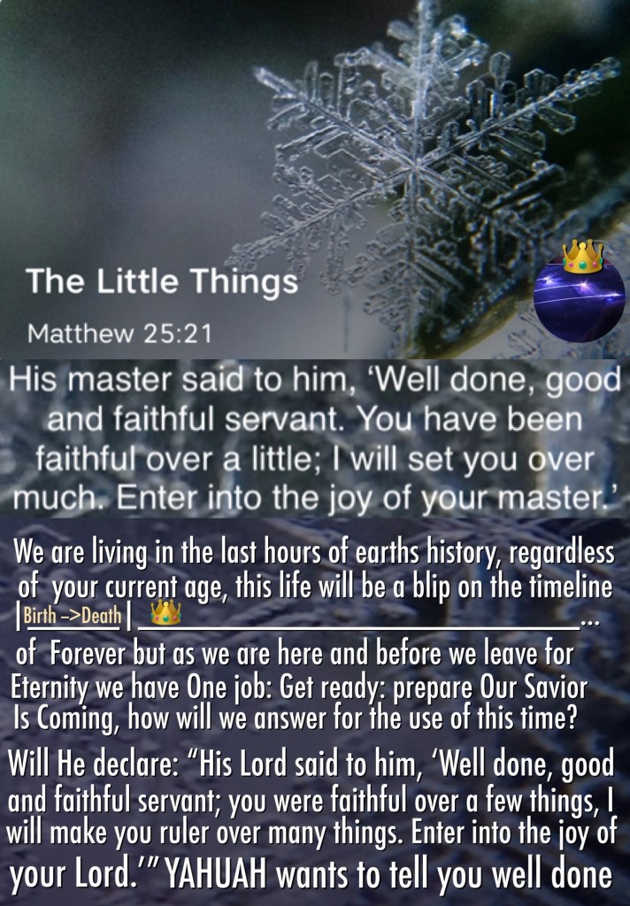 βHis Lord said to him, βWell done, good and faithful servant; you were faithful over a few things, I will make you ruler over many things. Enter into the joy of your Lord.ββMatthew 25:21 βEnter into His gates with thanksgiving, And into His courts with praise. Be thankful to Him, and bless His Name.β Psalms 100:4