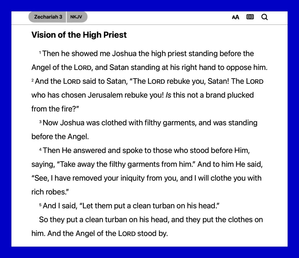 Zechariah 3:1 βThen he showed me Joshua the high priest standing before the Angel of the Lord, and Satan standing at his right hand to oppose him.β Zechariah 3:1 NKJV