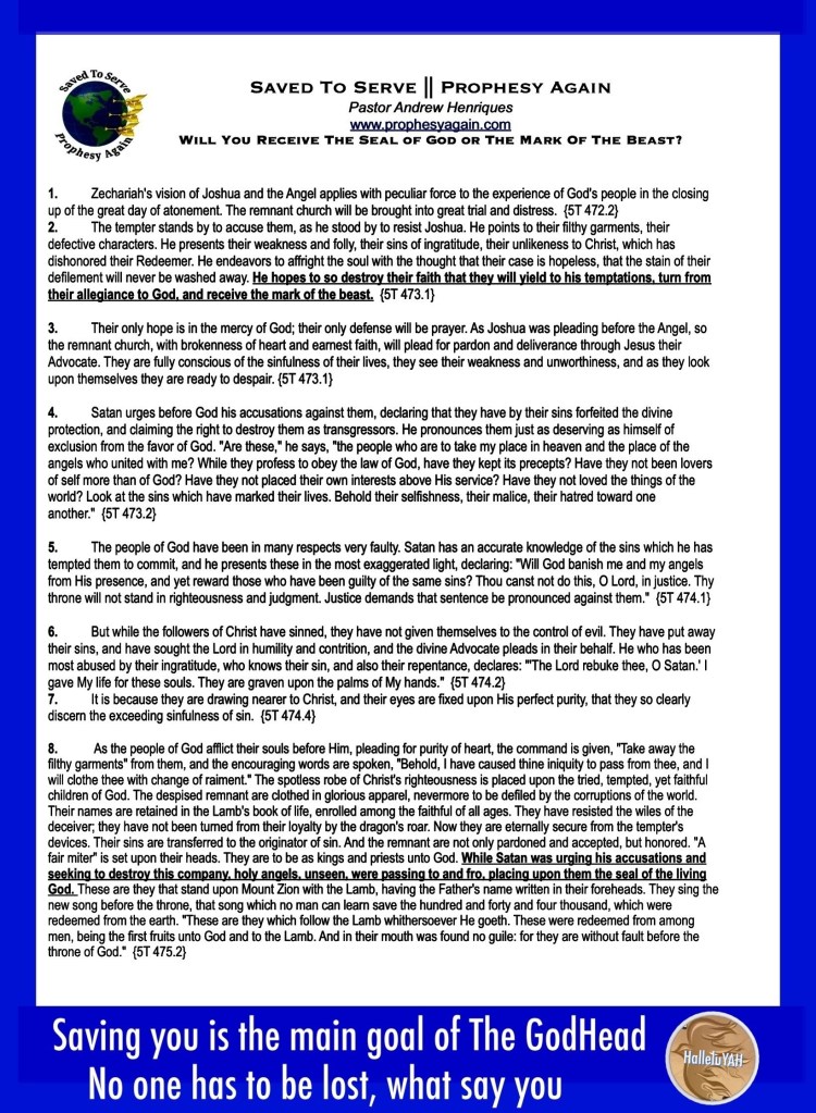 Revelation 14:9-10 βwrath of YAH up to the seven last plagueβs β βThen a third angel followed them, saying with a loud voice, βIf anyone worships the beast and his image, and receives his mark on his forehead or on his hand, he himself shall also drink of the wine of the wrath of God, which is poured out full strength into the cup of His indignation. He shall be tormented with fire and brimstone in the presence of the holy angels and in the presence of the Lamb.β Revelation 14:9-10 NKJV