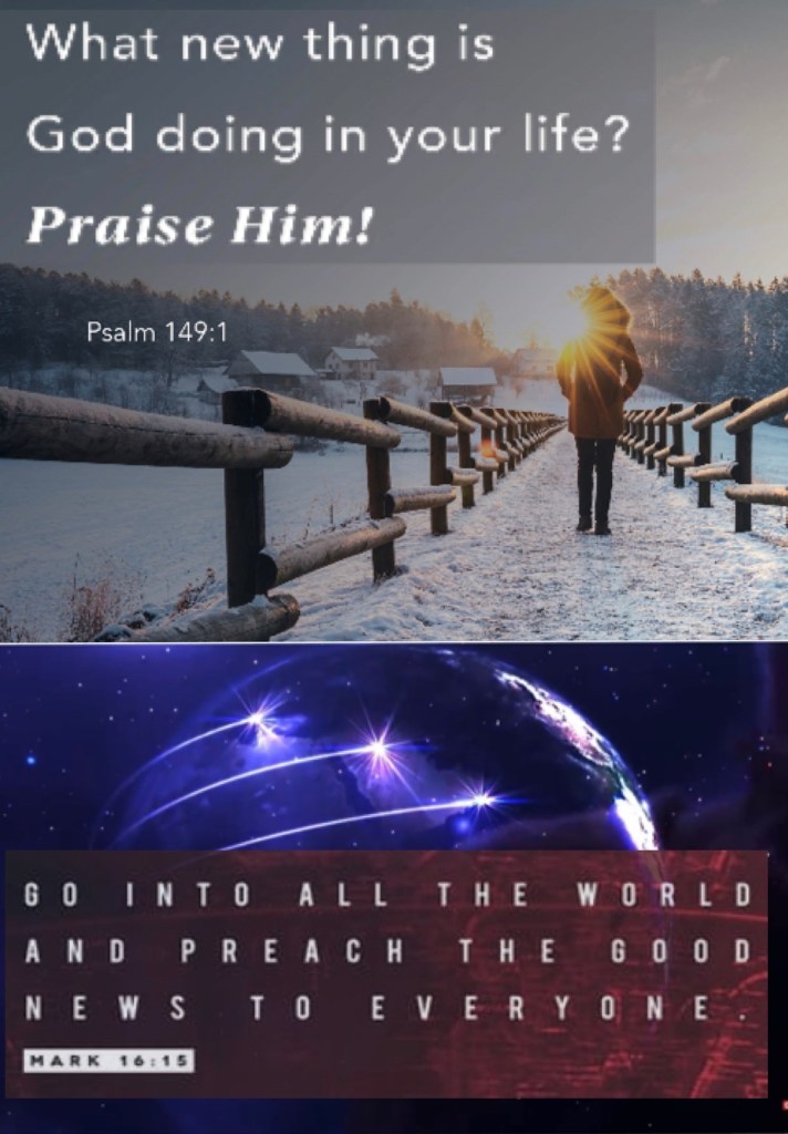“Praise The Lord! Sing to The Lord a new song, And praise Him in the congregation of His godly ones (believers).” Psalms 149:1 AMP “And He said to them, “Go into all the world and preach the gospel to all creation.” Mark 16:15 AMP