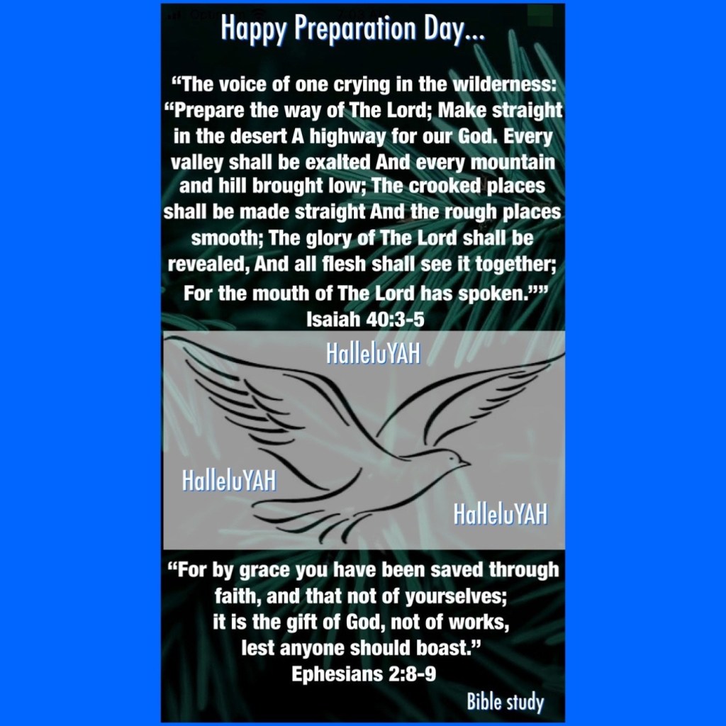 Happy Preparation Day: Friday… it’s time beloved, time to prepare our selves: homes: friends… God is trying to get our attention because it’s time, Jesus Christ is coming again soon. Get ready, get ready and as the sun sets wherever you are “Happy Sabbath” spend the time getting to know our God. God loves you, God bless you! Walk good… Rest better