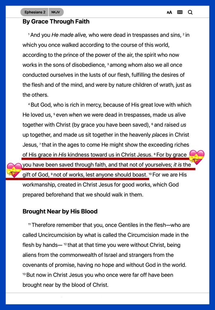 Eph 2:9 Not of works, lest any man should boast.