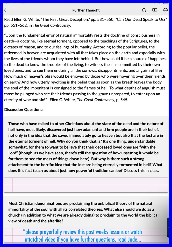 EGW Supplemental note: This Day With God, “Securing Our Inheritance,” p. 152;The Great Controversy, “Can Our Dead Speak to Us?” pp. 51–562.