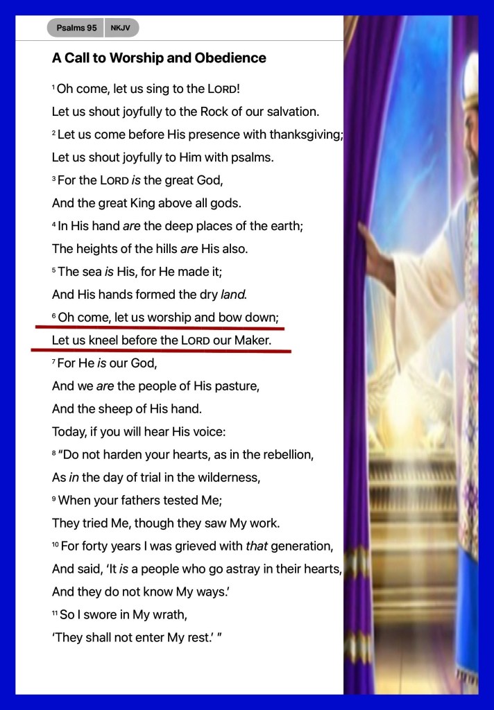 Psa 95:6 O come, let us worship and bow down: let us kneel before the LORD our maker.