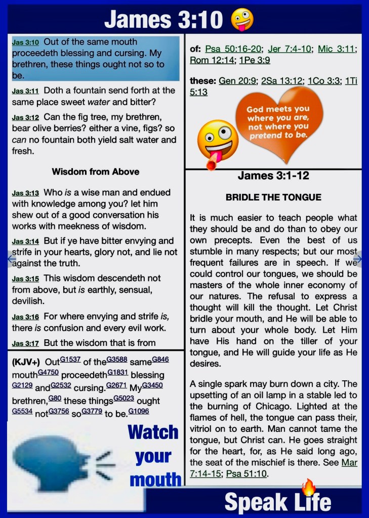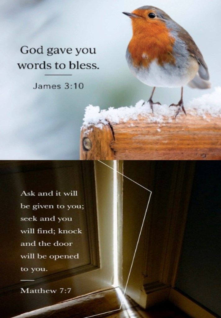 “Out of the same mouth proceed blessing and cursing. My brethren, these things ought not to be so.” James 3:10 ““Ask, and it will be given to you; seek, and you will find; knock, and it will be opened to you.” Matthew 7:7