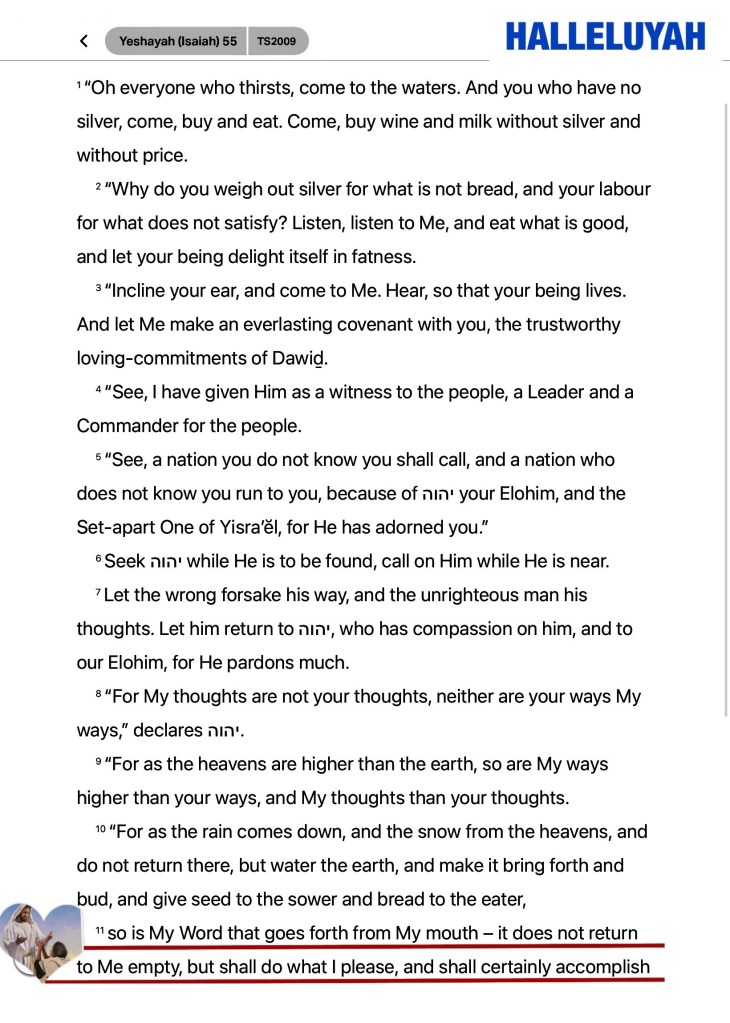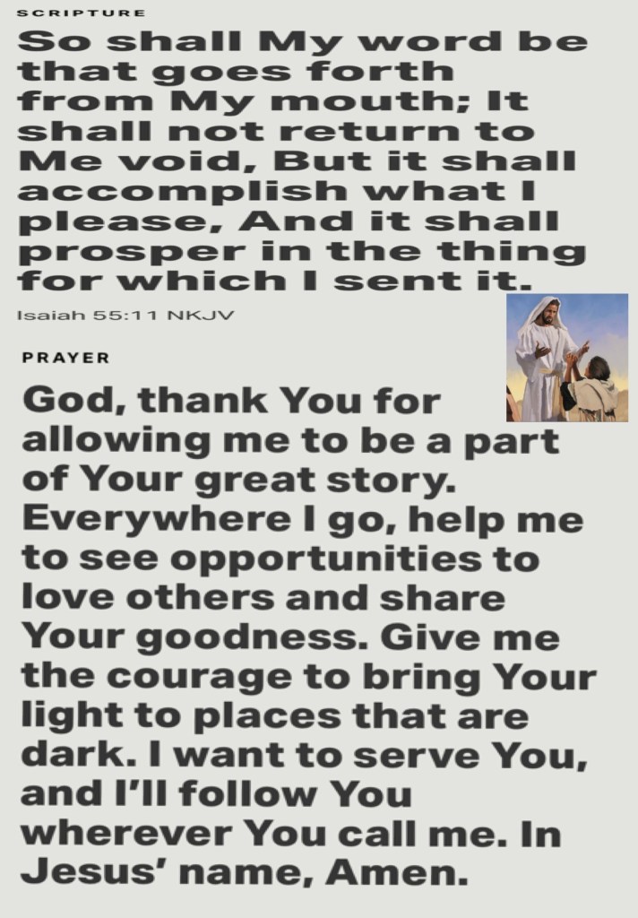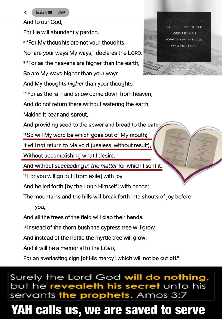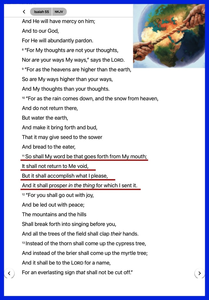 Isa 55:11 So shall my word be that goeth forth out of my mouth: it shall not return unto me void, but it shall accomplish that which I please, and it shall prosper in the thing whereto I sent it.