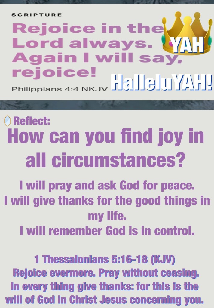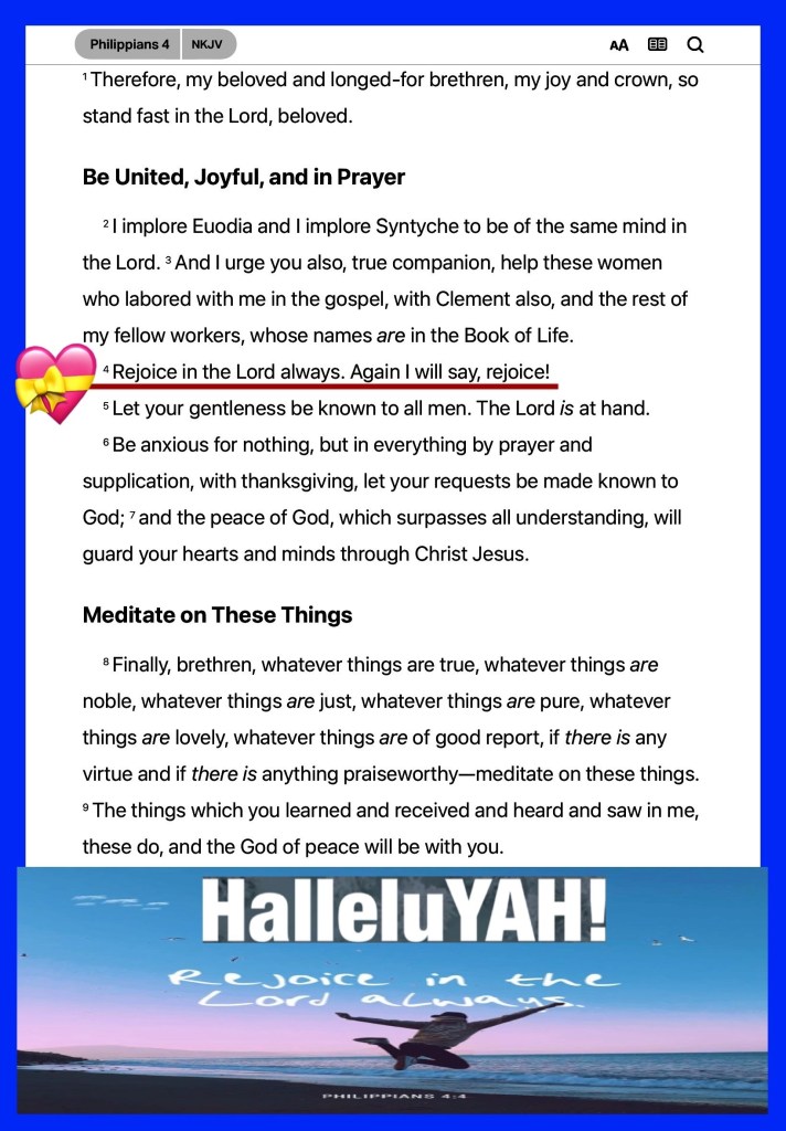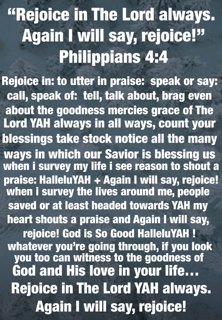 Php 4:4 Rejoice in the Lord alway: and again I say, Rejoice.