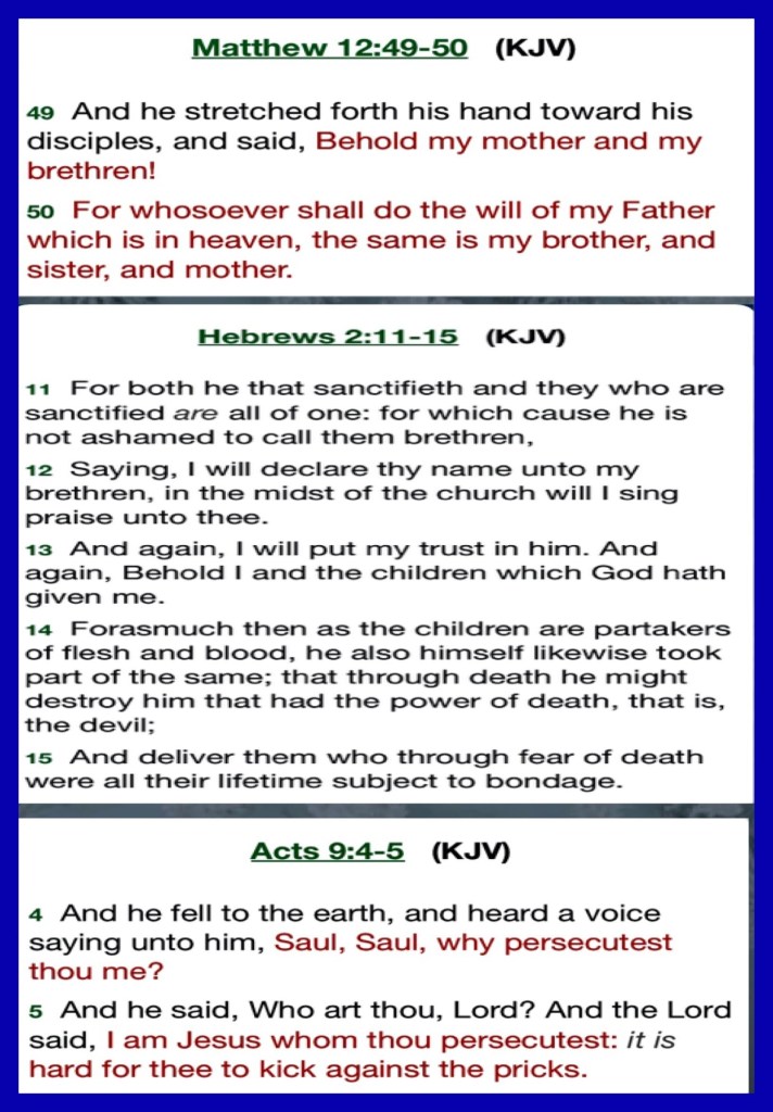 ye have done it unto me: Act 9:4-5; Eph 5:30