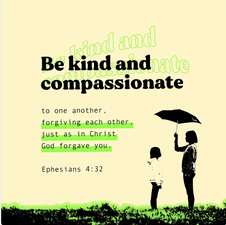 Eph 4:32 And be ye kind one to another, tenderhearted, forgiving one another, even as God for Christ’s sake hath forgiven you.
