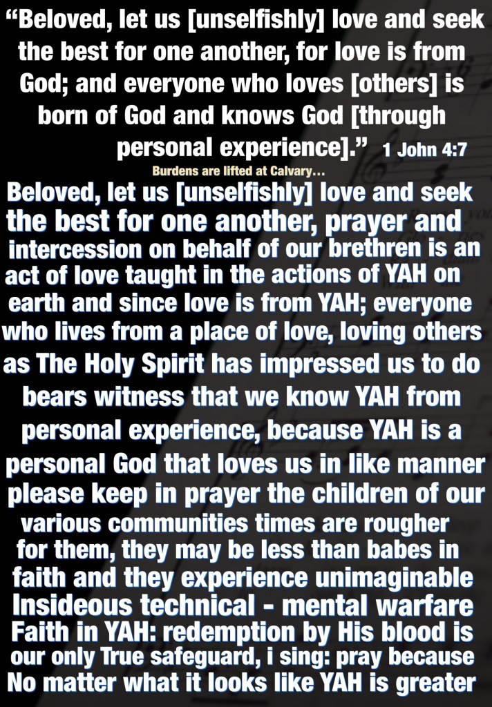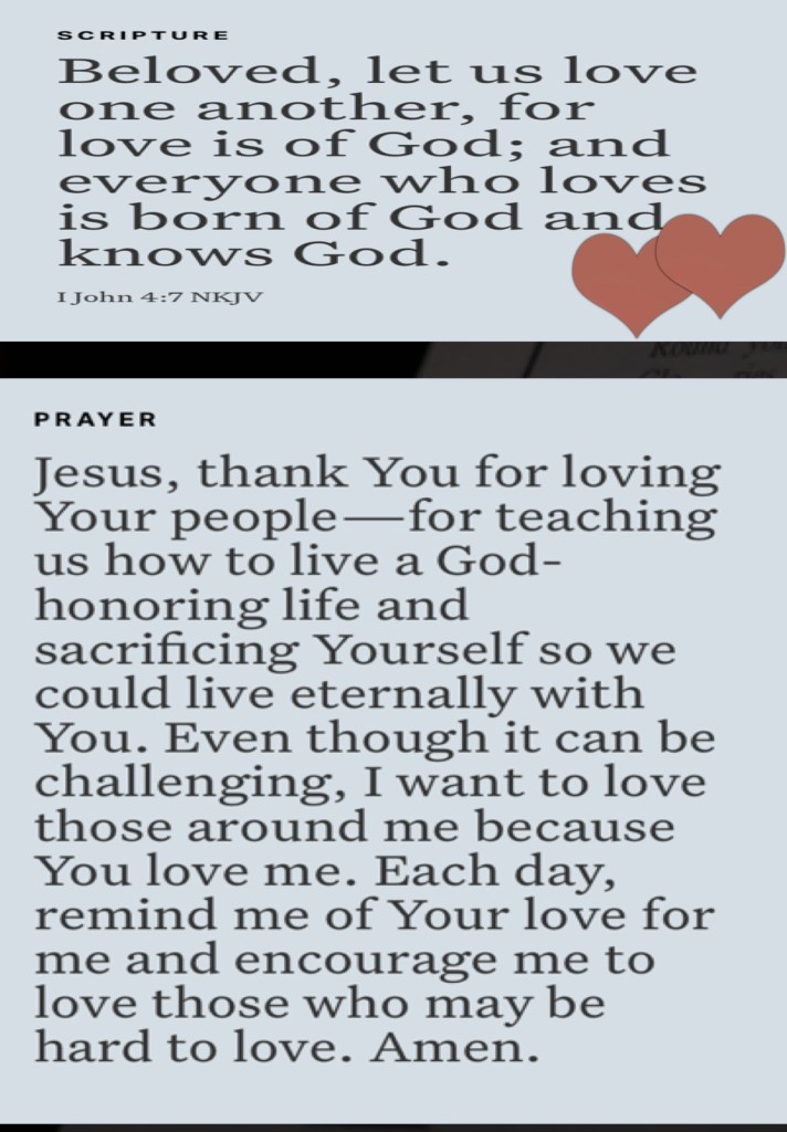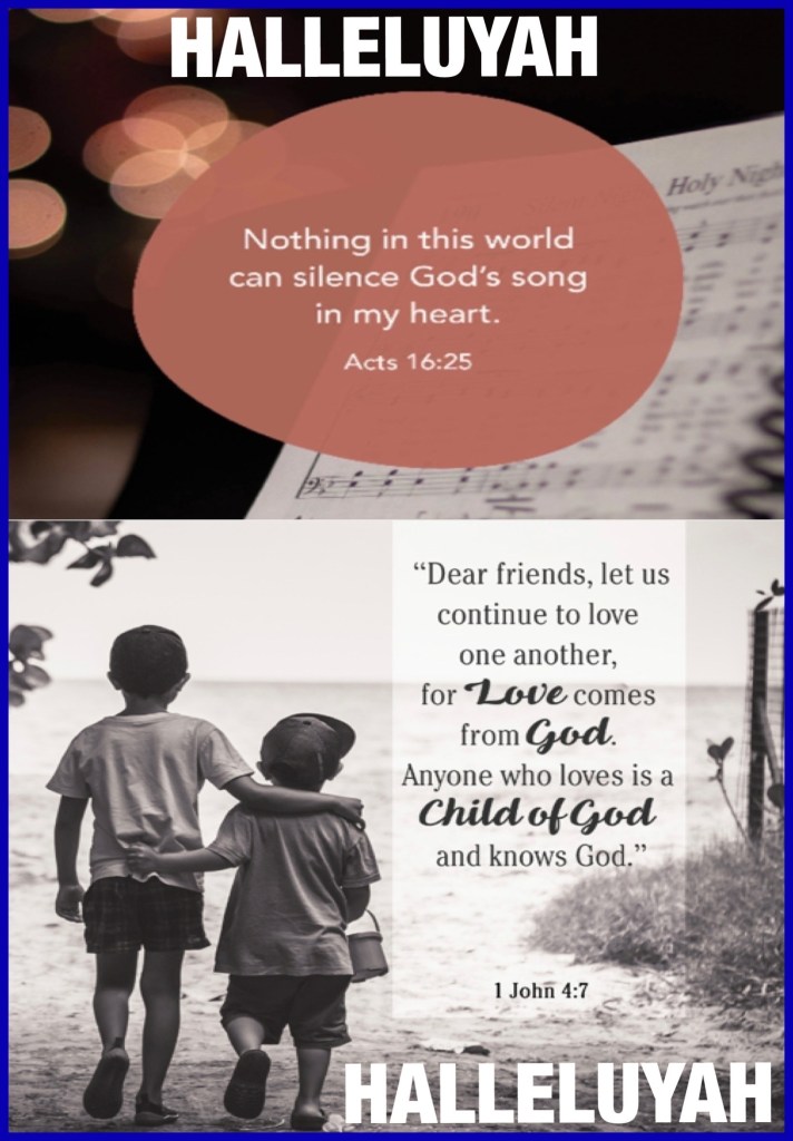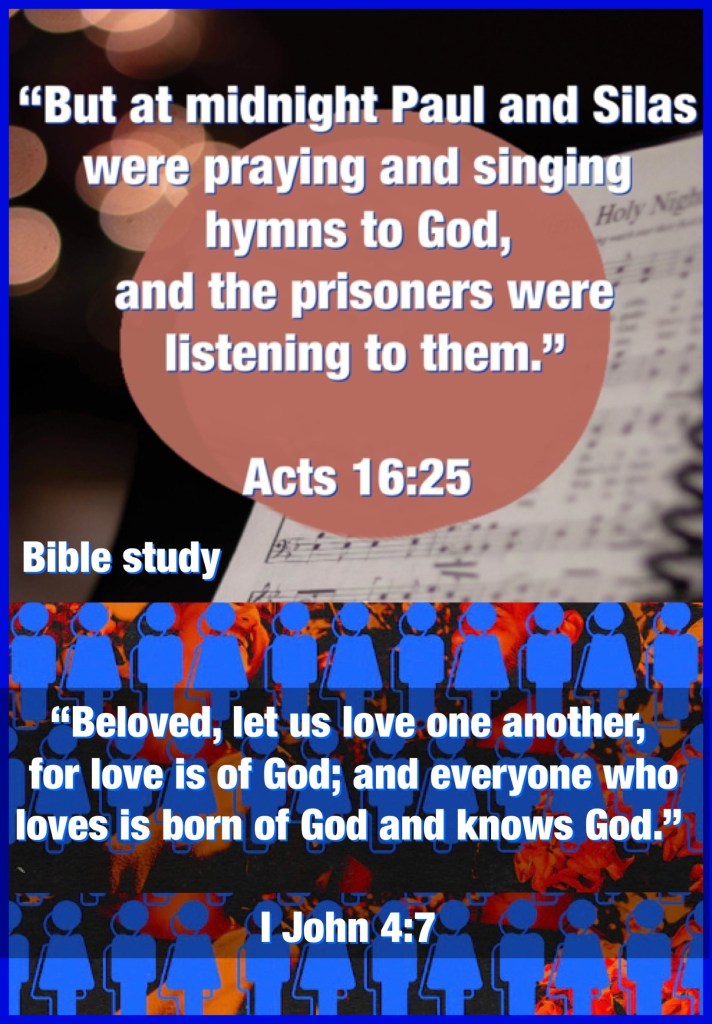βBut at midnight Paul and Silas were praying and singing hymns to God, and the prisoners were listening to them.β Acts 16:25 βBeloved, let us [unselfishly] love and seek the best for one another, for love is from God; and everyone who loves [others] is born of God and knows God [through personal experience].β 1 John 4:7