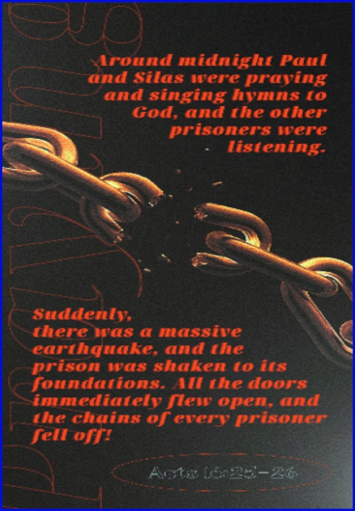 Act 16:25 And at midnight Paul and Silas prayed, and sang praises unto God: and the prisoners heard them.